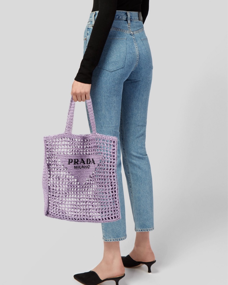 Prada Raffia Tote Bag Purple