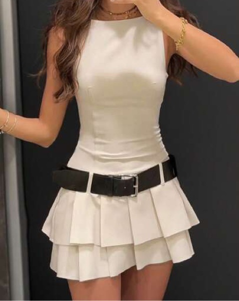 Viral White Bodycon Belted Dress