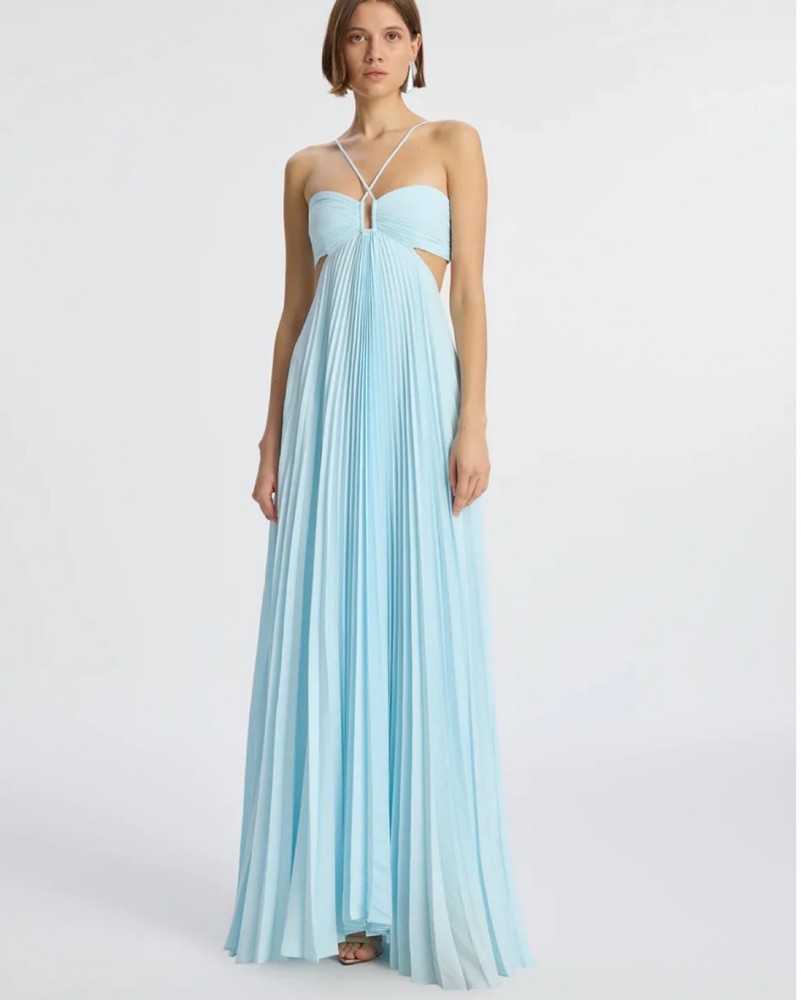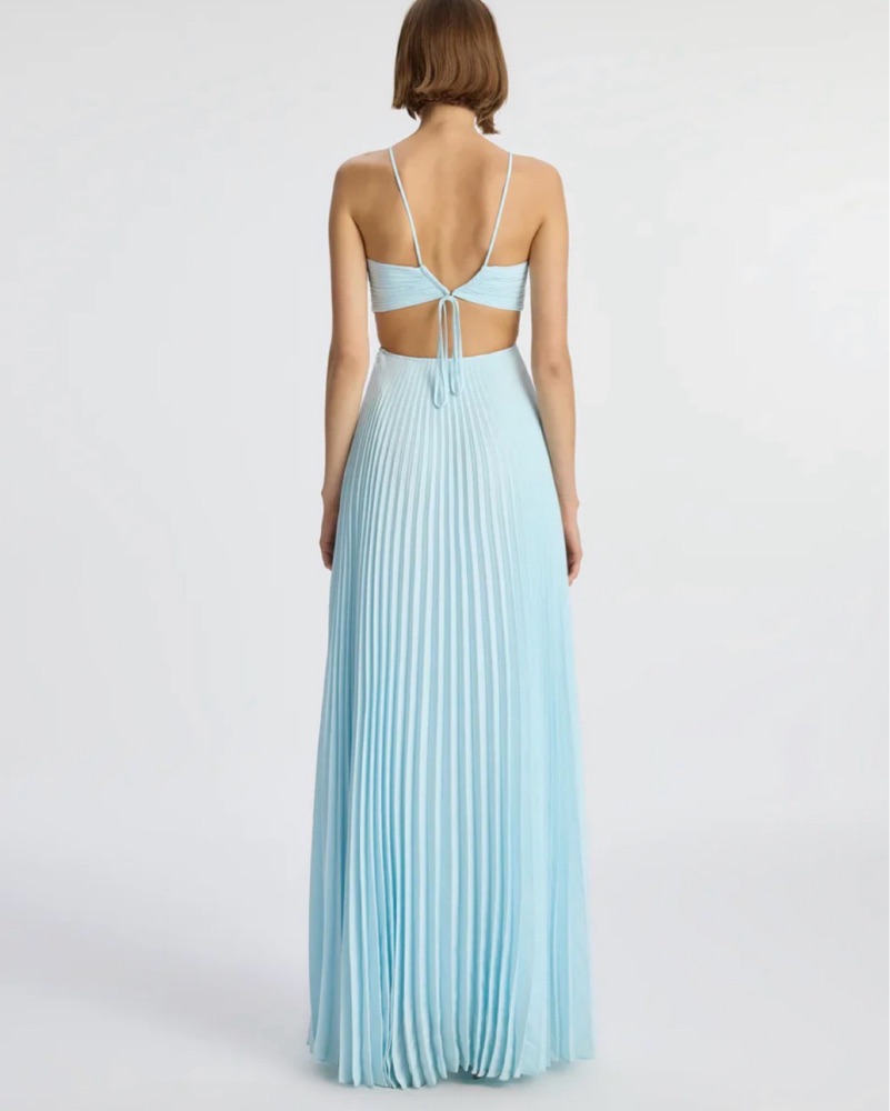 A.L.C Delfina Satin Pleeded Dress- Lime