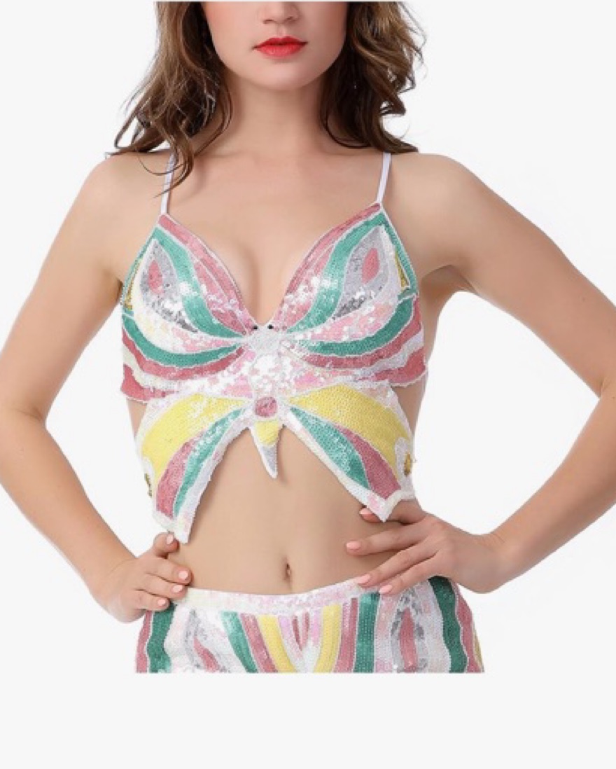 Sequin Butterfly Crop Top