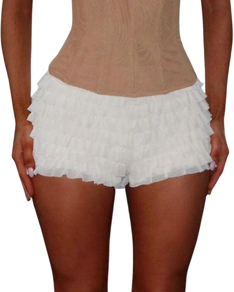 White Ruffle Micro Shorts