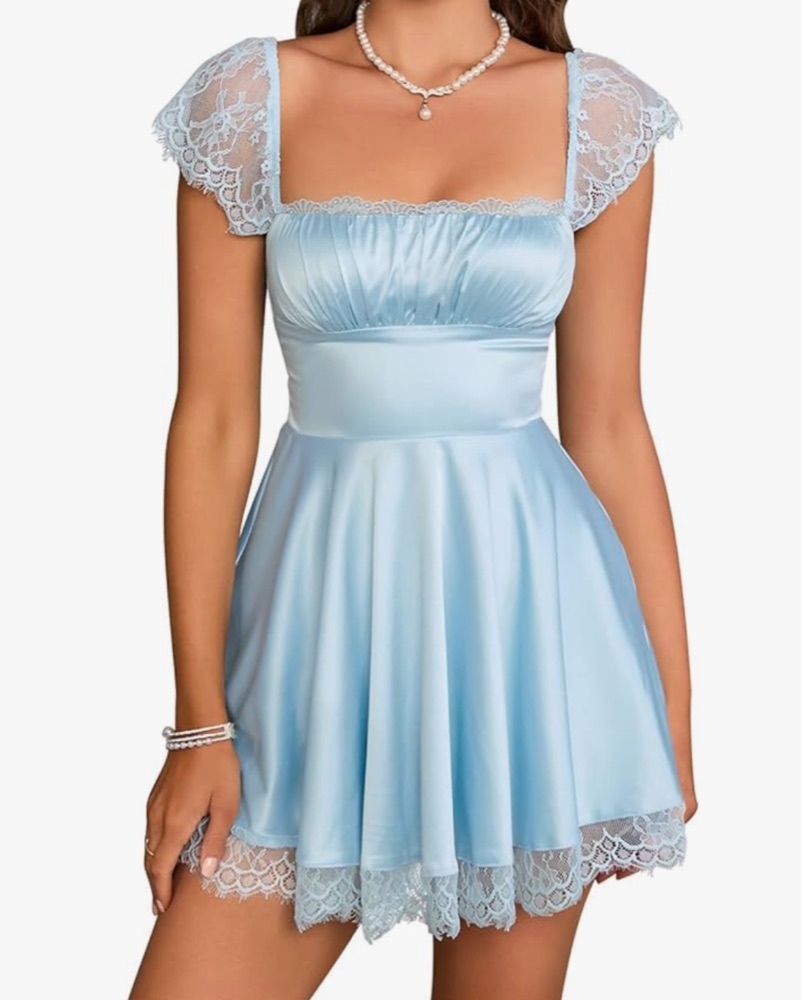 ENYMIN Baby Blue Satin Mini Dress