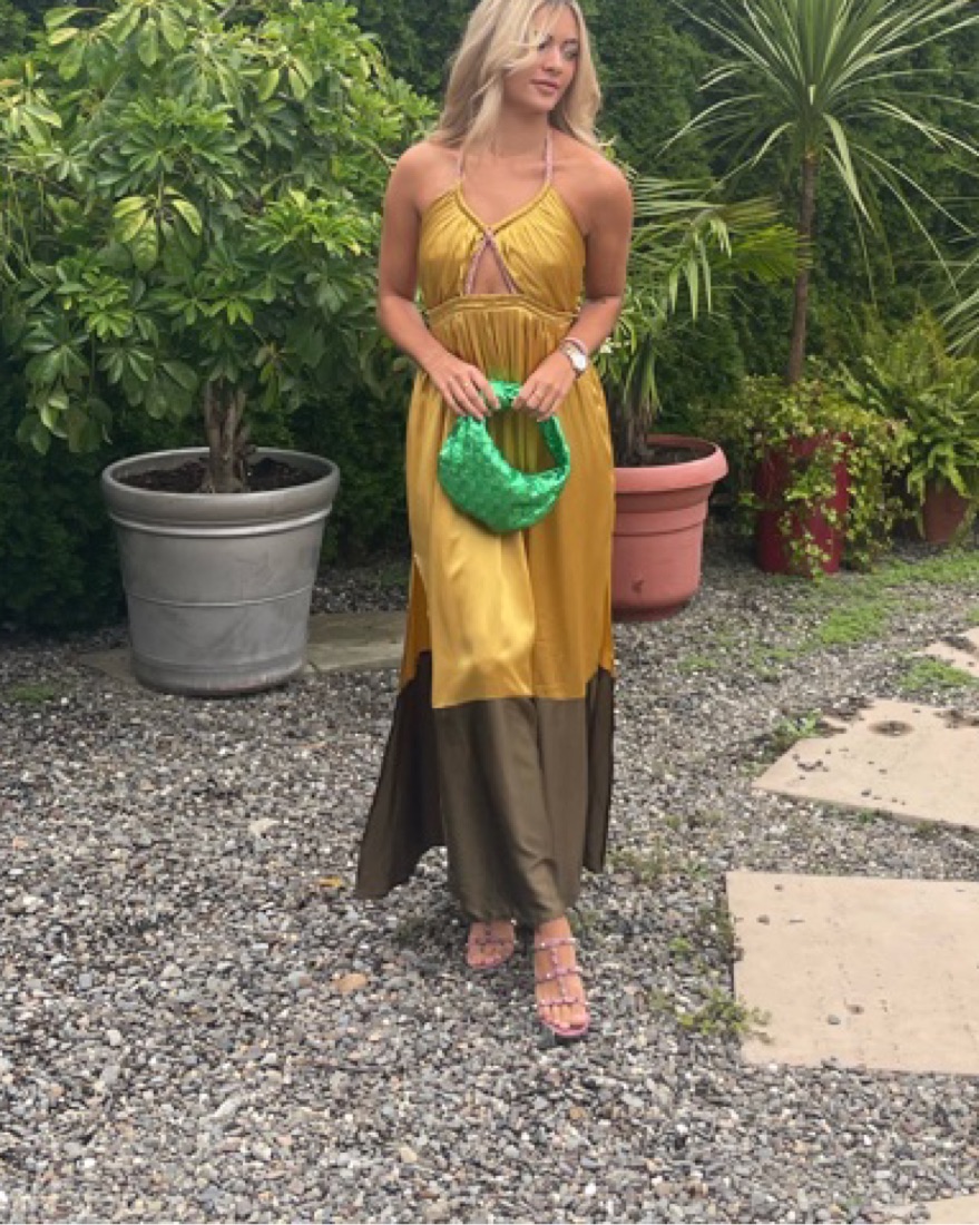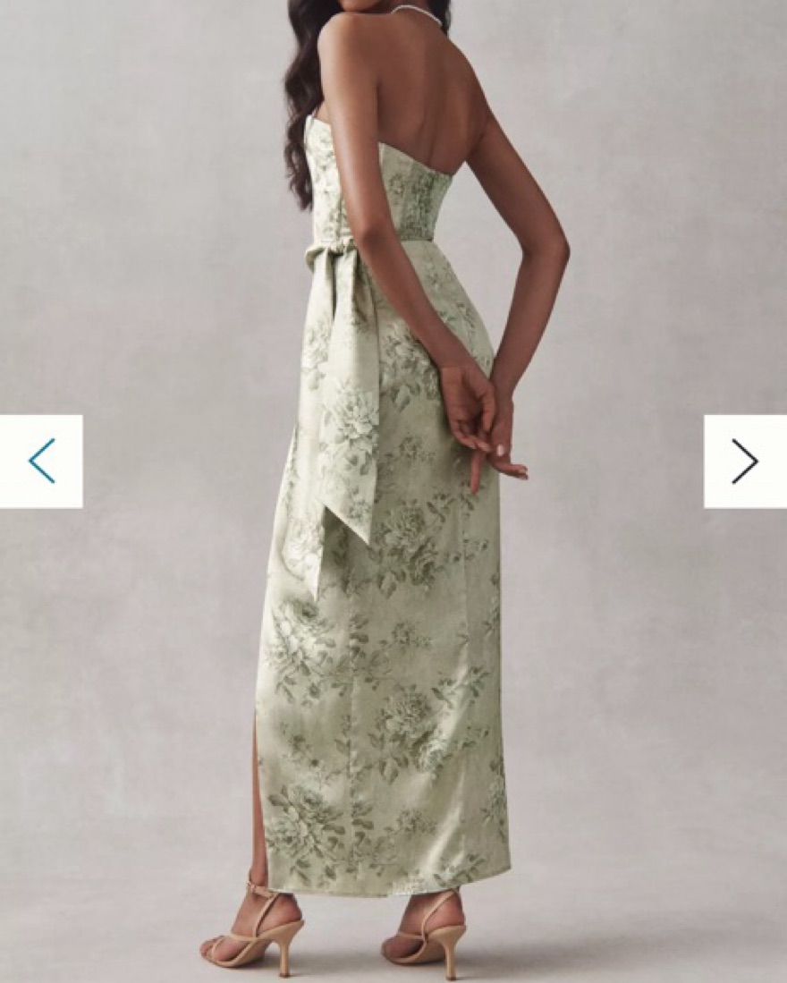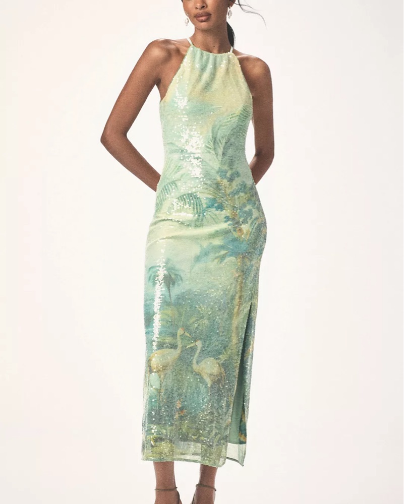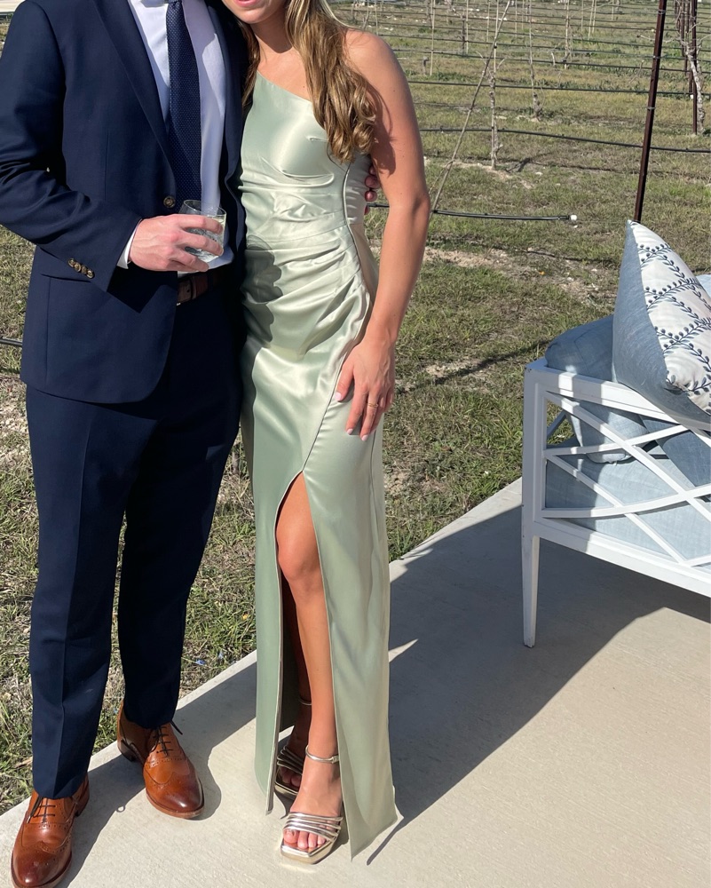 Open-Back Front-Slit Green Silky Dress