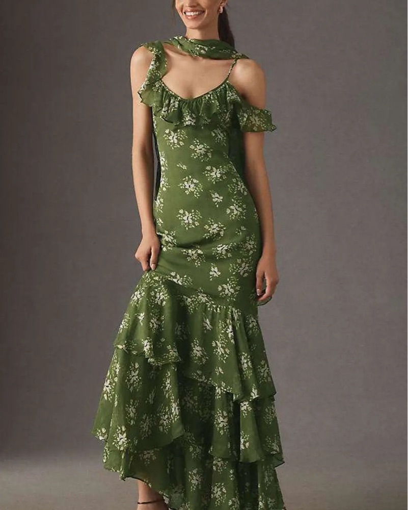 Anthropologie Green Floral Maxi Dress