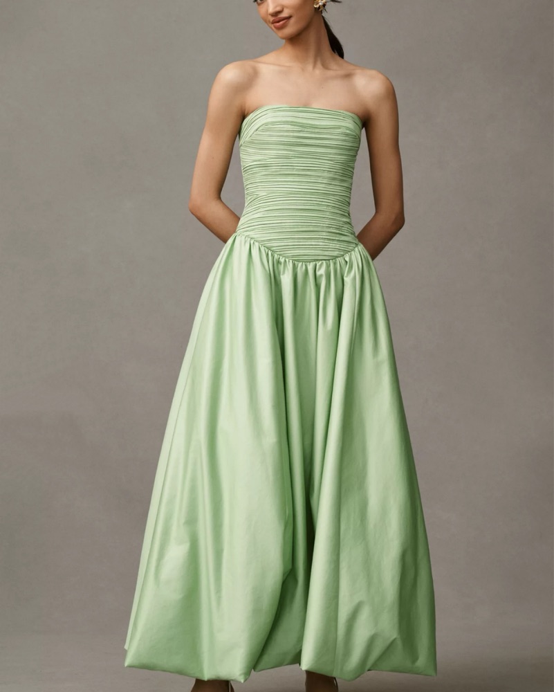 Green drop waist Strapless Dress