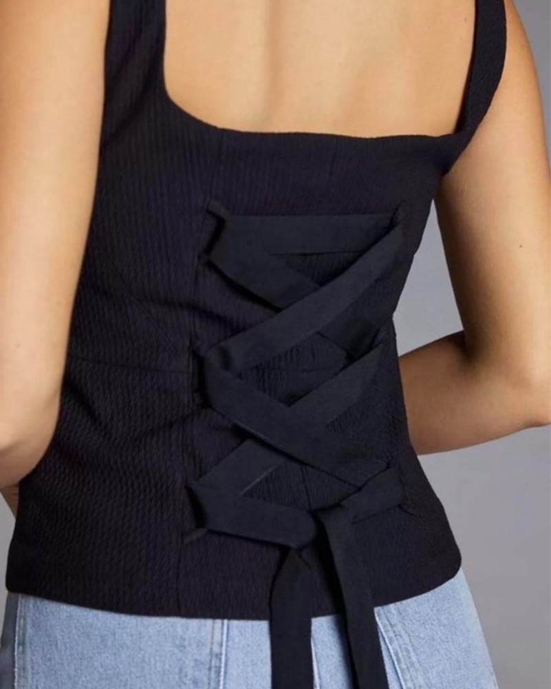 Anthropolgoy Maeve Black Corset Tie Top