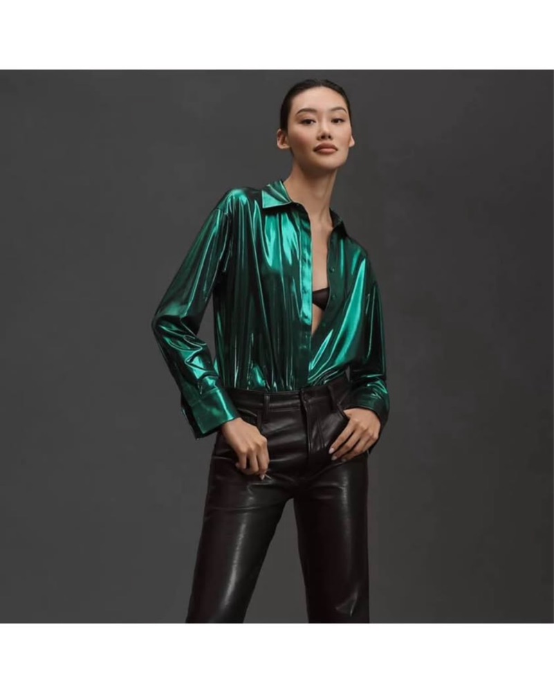 NWT Metallic Green Button down