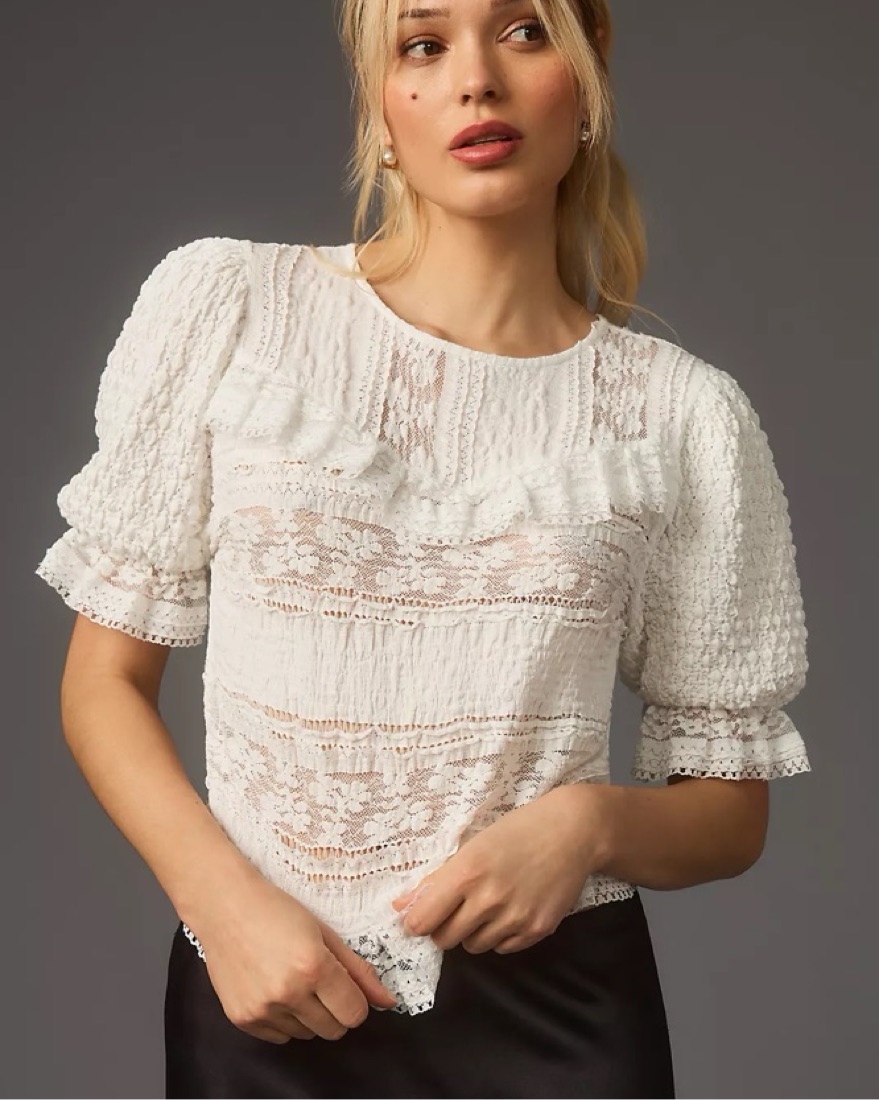 Anthropologie Puff-Sleeve Lace Blouse