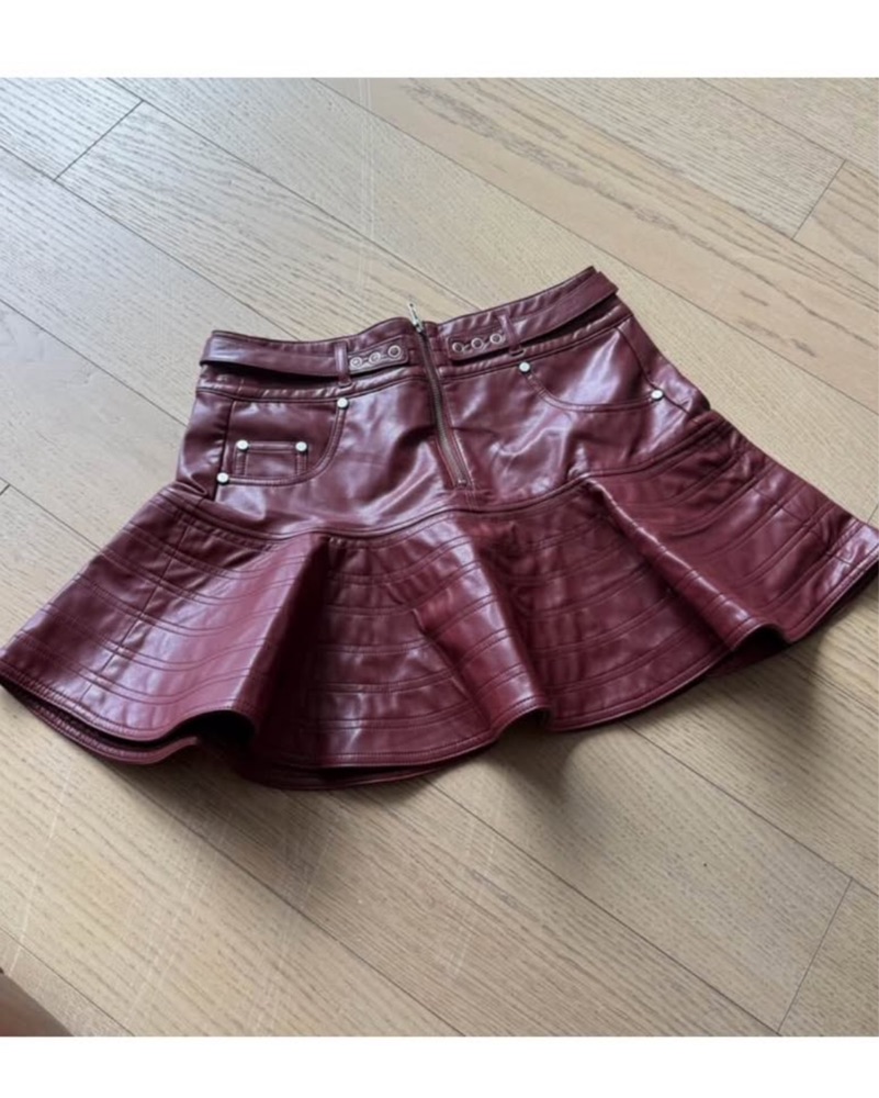 NWT Red Faux Leather Flared Miniskirt