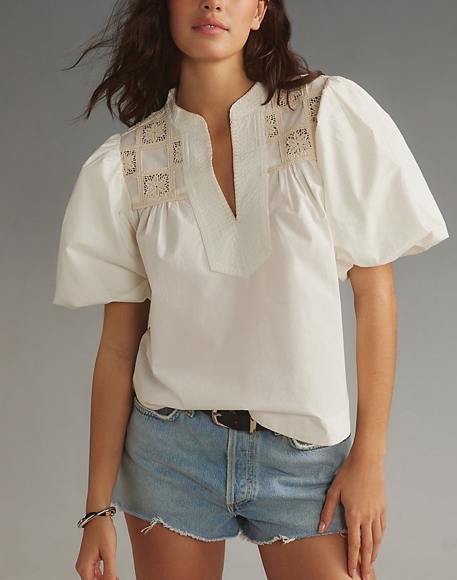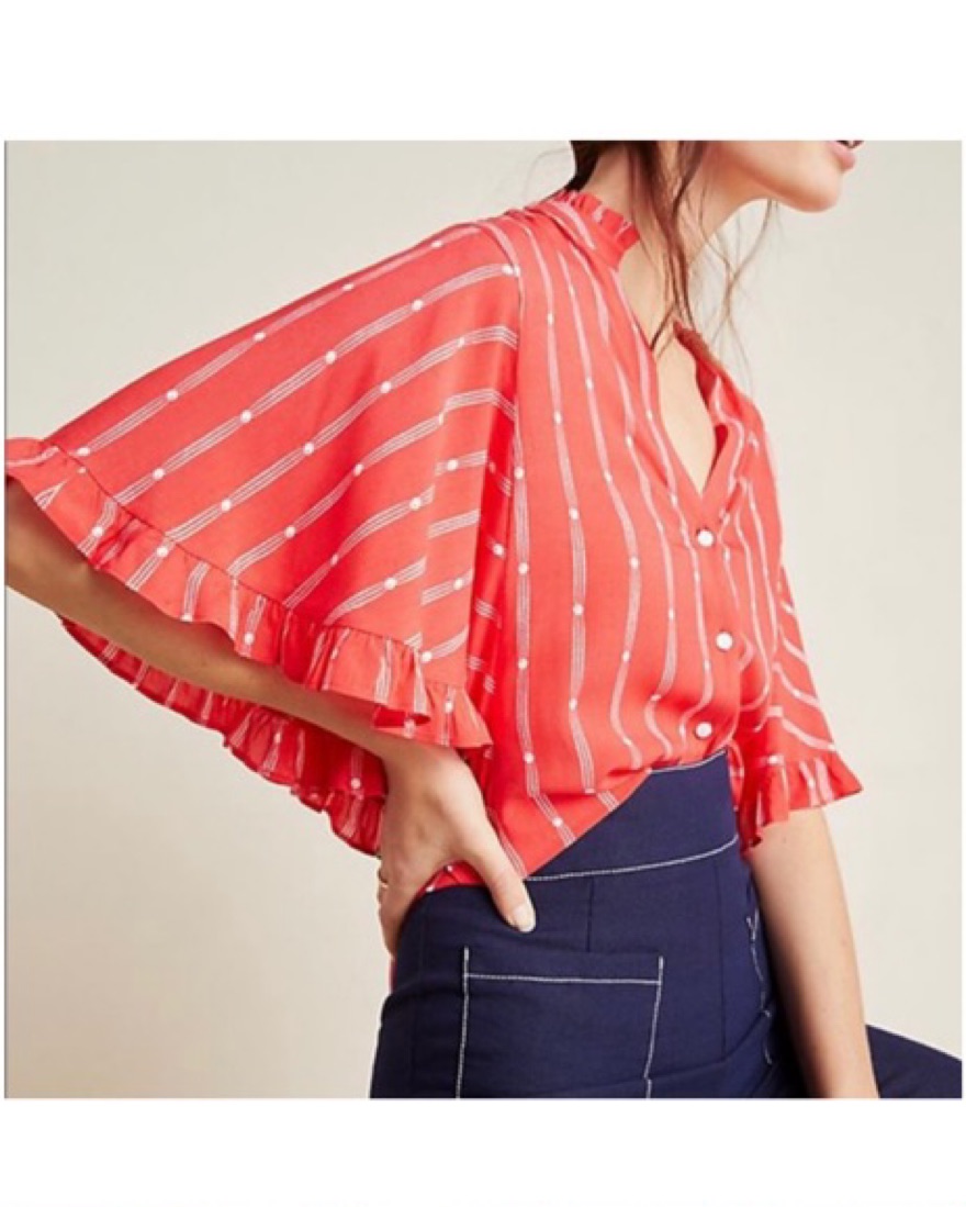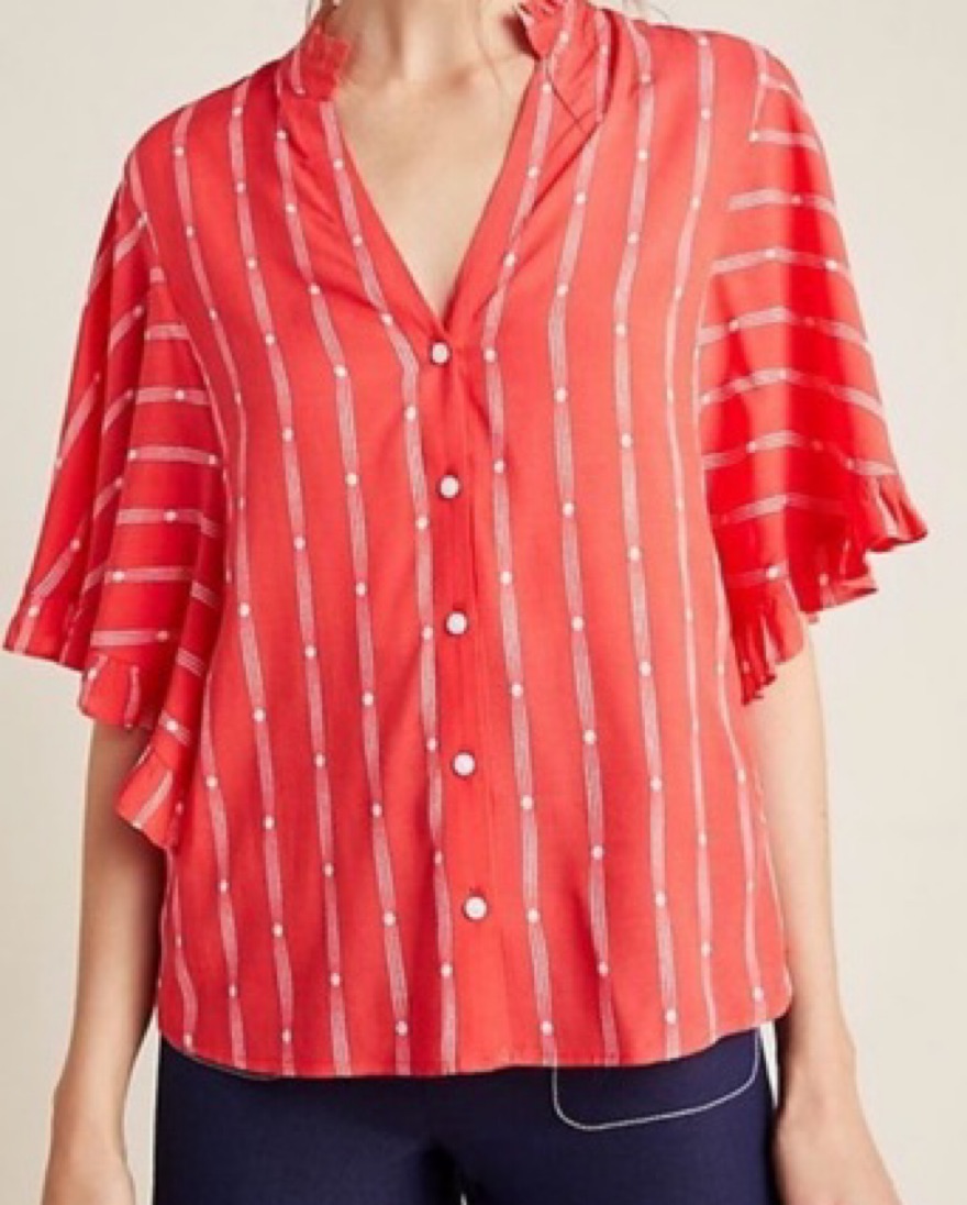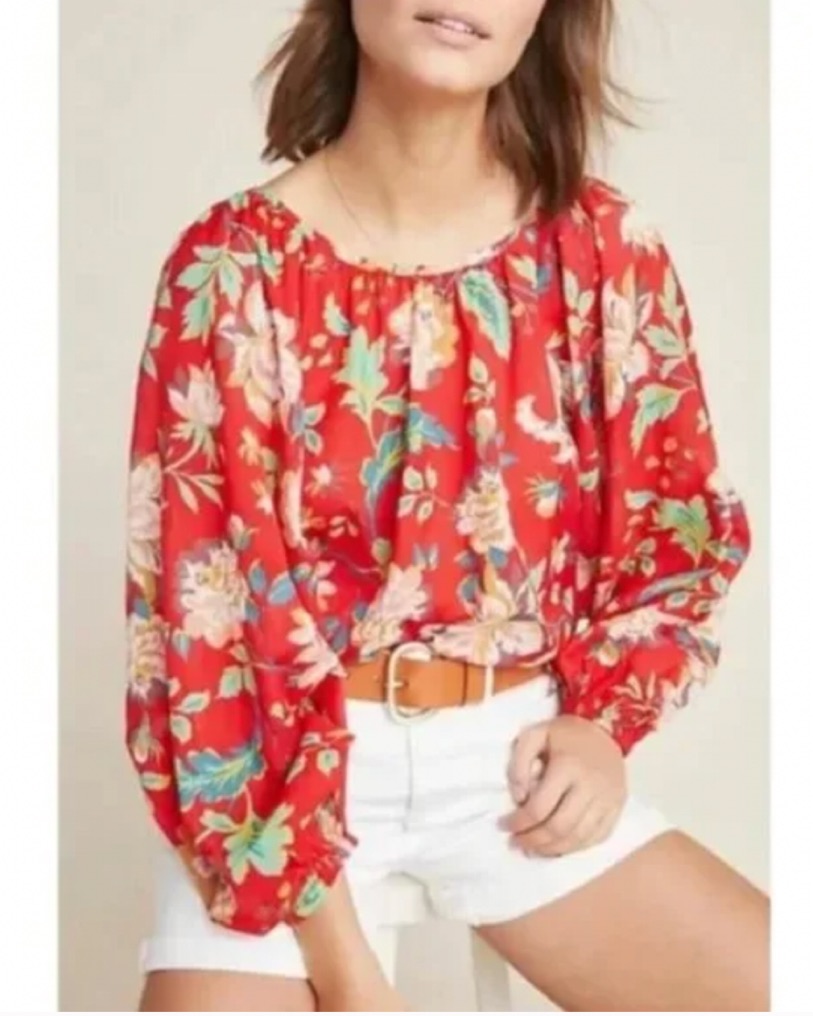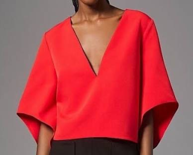 Anthropologie Mare Red V-Neck Cropped Blouse Short Sleeve Blouse