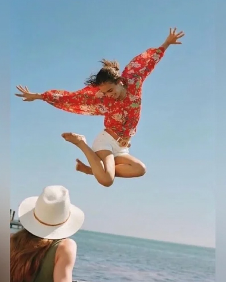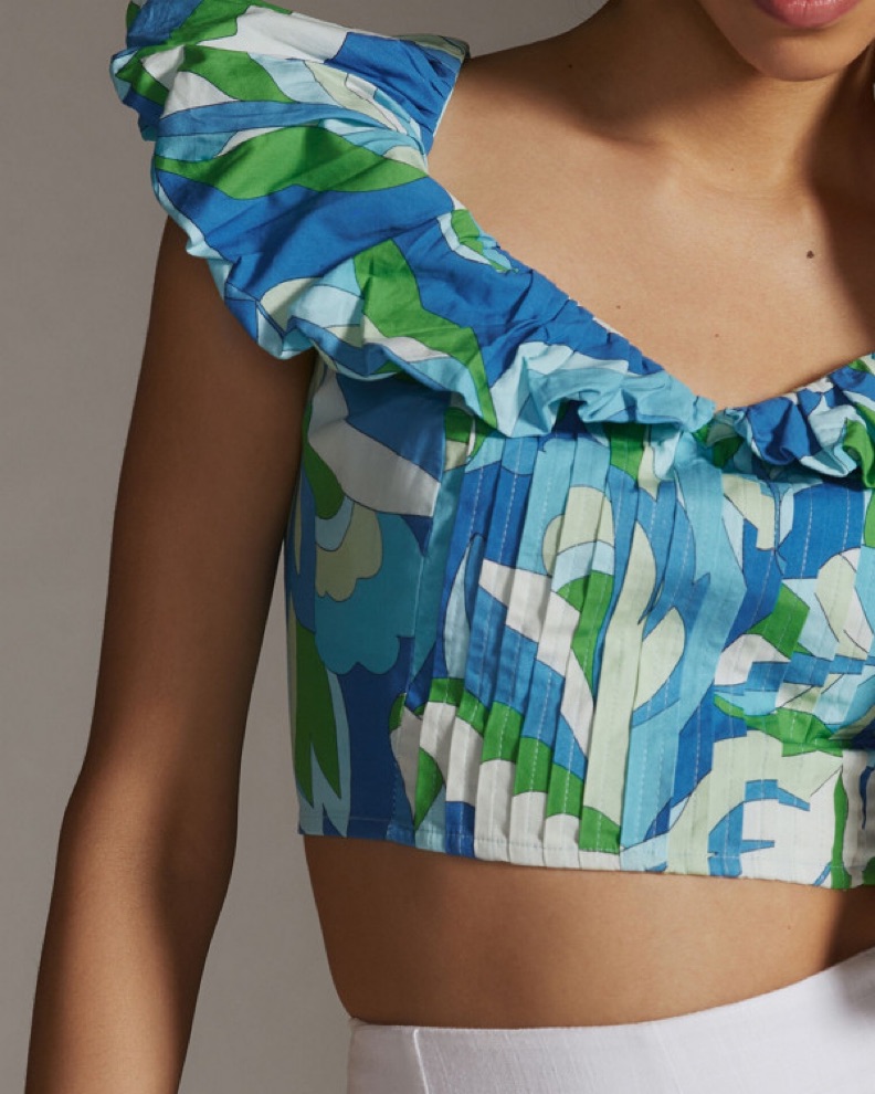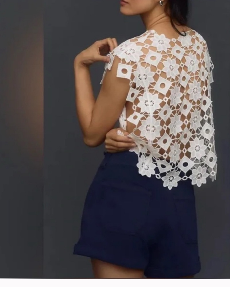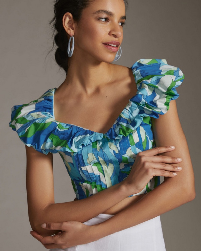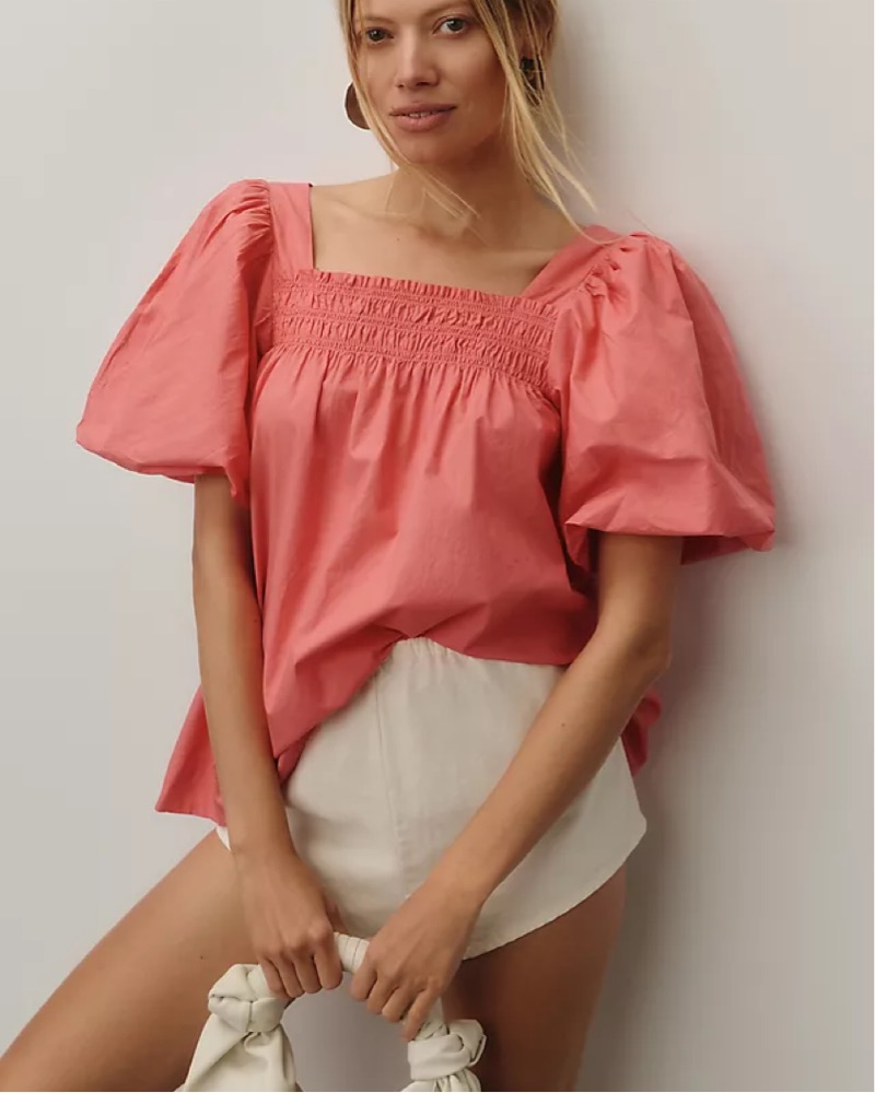 Anthropologie Mare Red V-Neck Cropped Blouse Short Sleeve Blouse