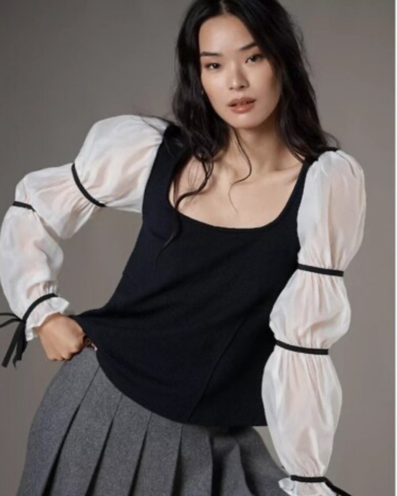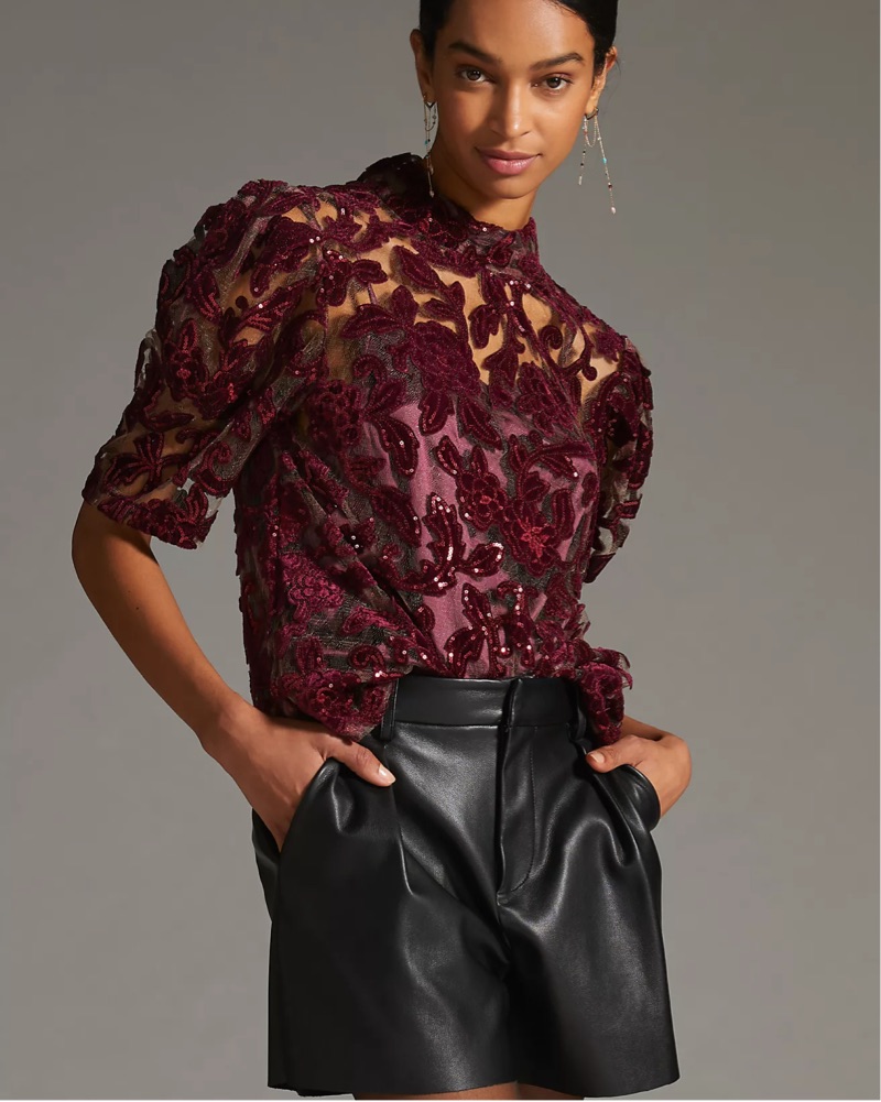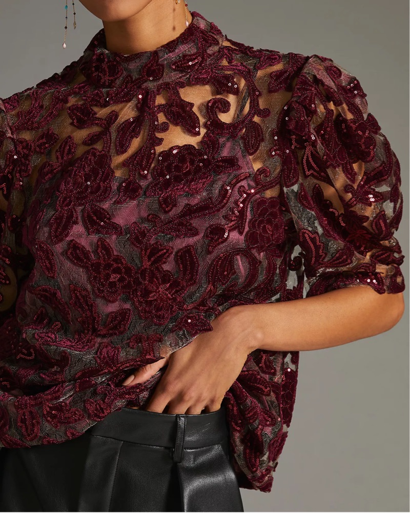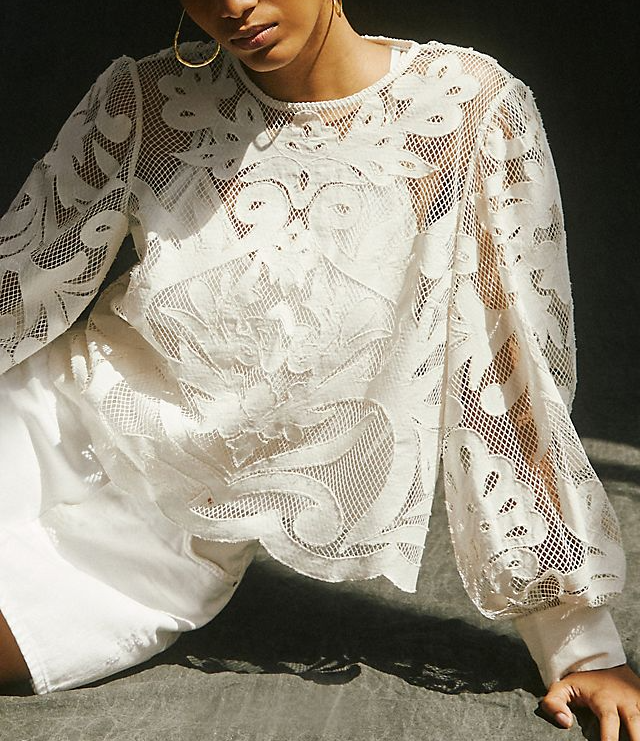 ANTHROPOLOGIE LONG-SLEEVE BEADED TOP