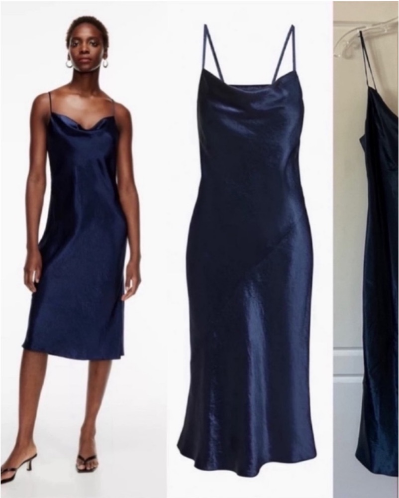 Aritzia Navy Satin Dress