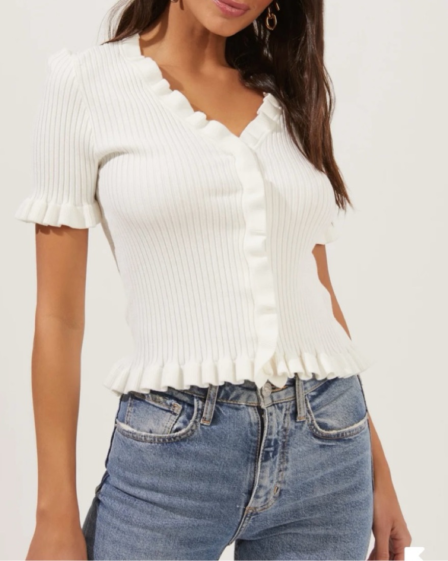 ASTR Ruffle Hem Pearl Button Up