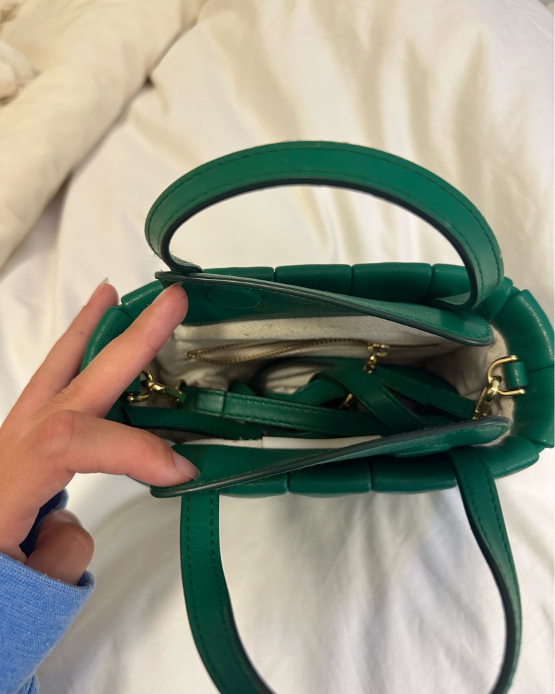 woven green crossbody bag - real leather