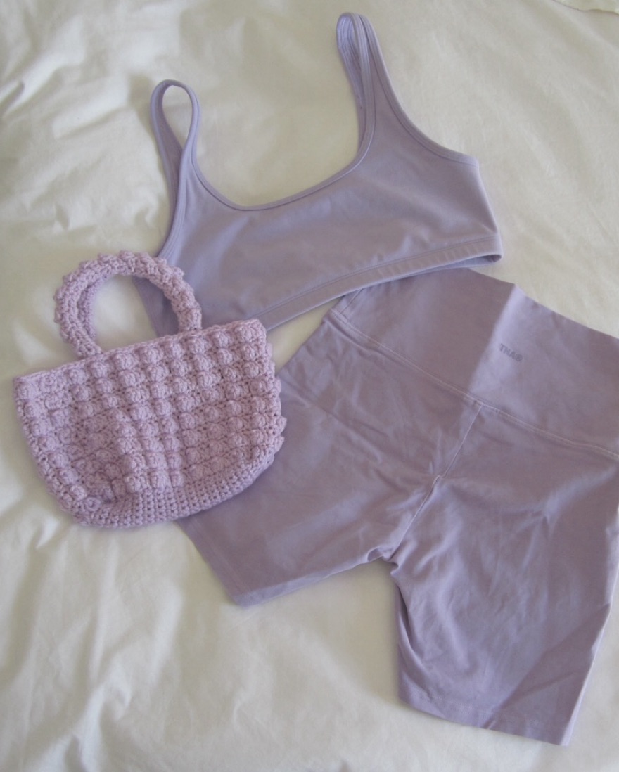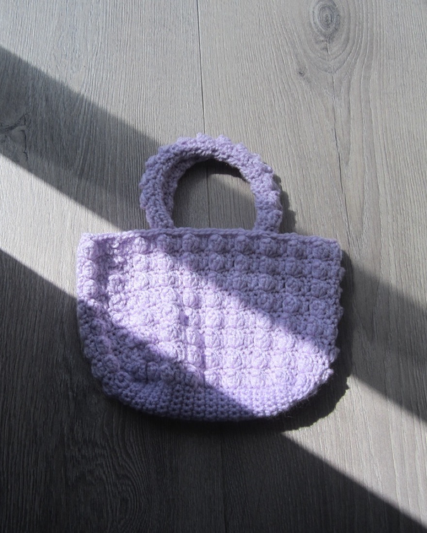 Purple handmade crochet bubble bag