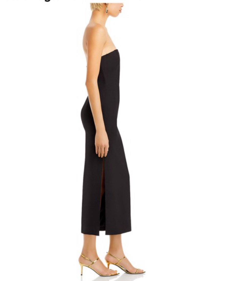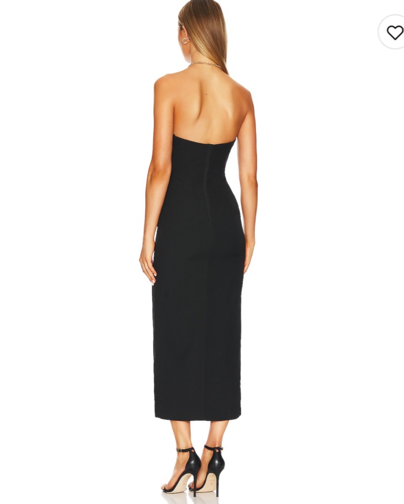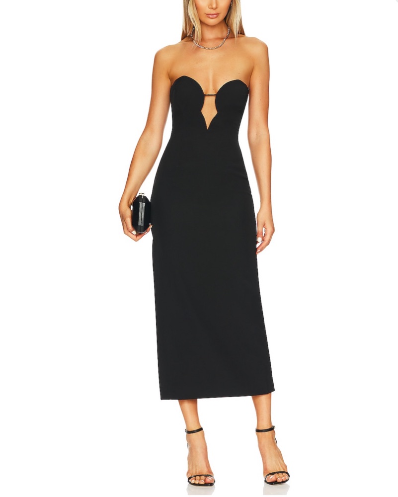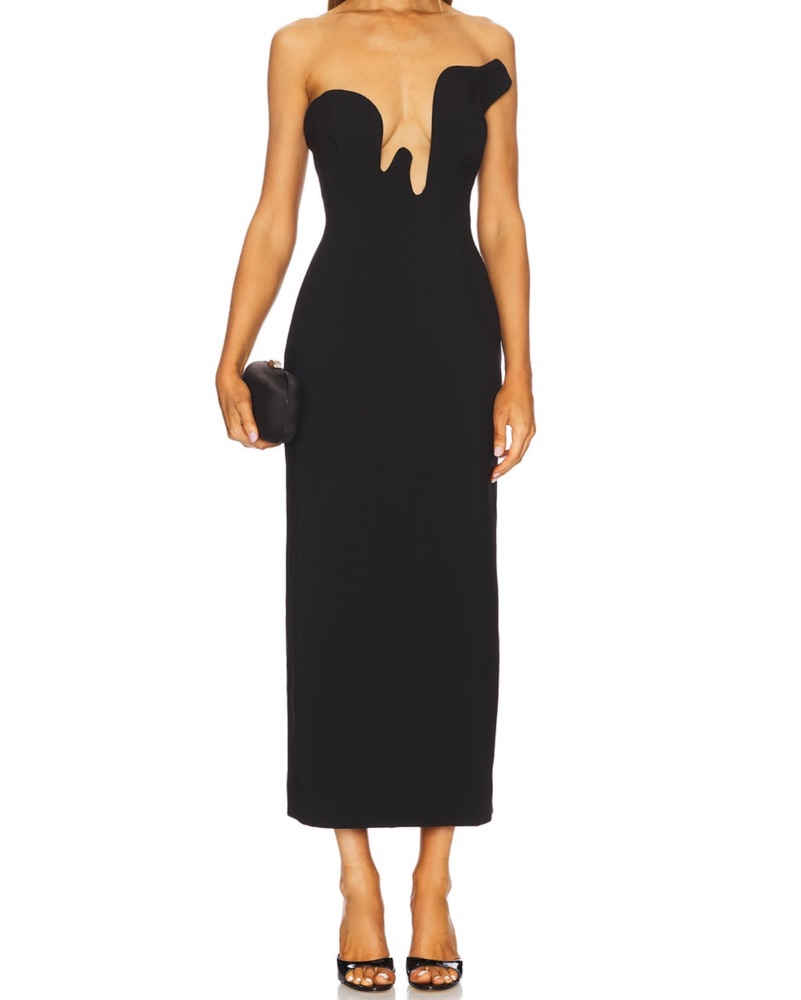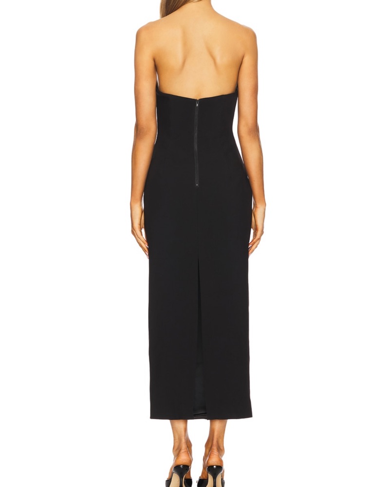 Black Strapless Plunging Midi Dress