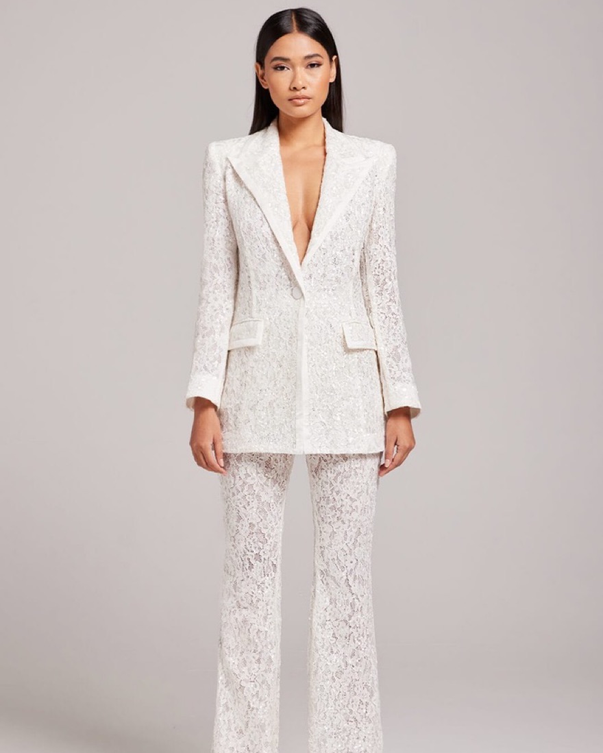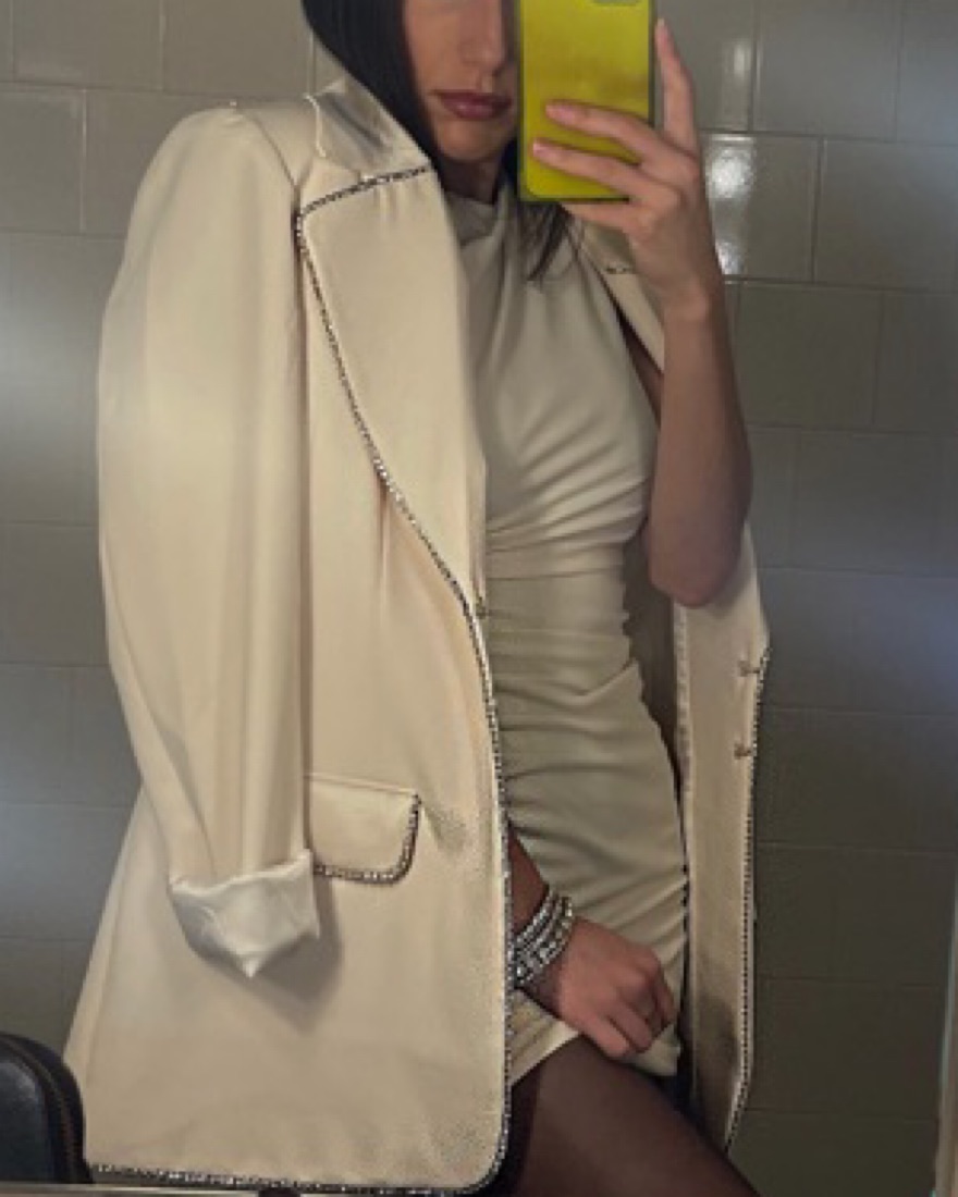 Old hollywood Cream Glam White Blazer