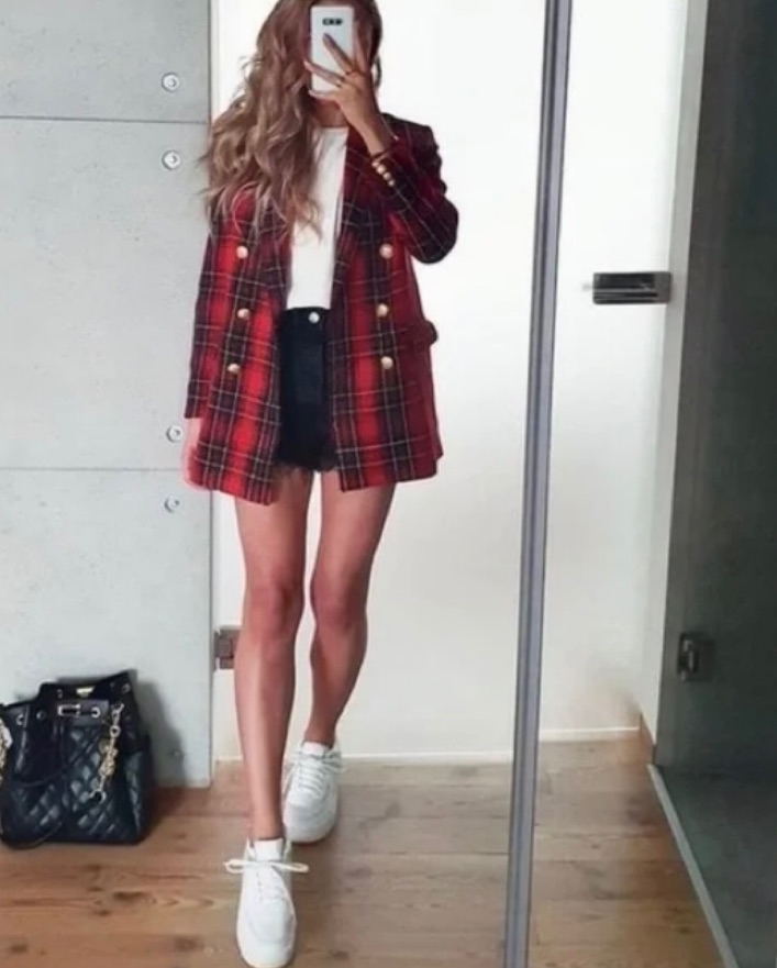Zara Red and Black Plaid Blazer