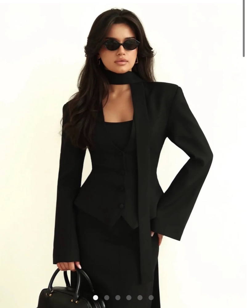 Black Cinched Blazer With Neck Scarf