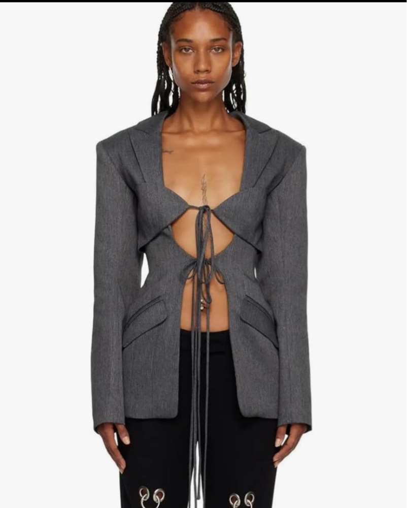 Chic Gray Cutout Blazer