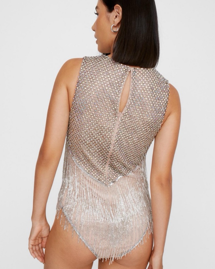 Glass Stone Encrusted Fringe Bodysuit