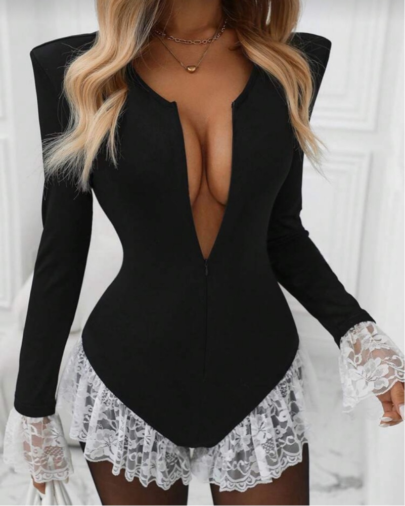 Black + Gold Lace Bodysuit