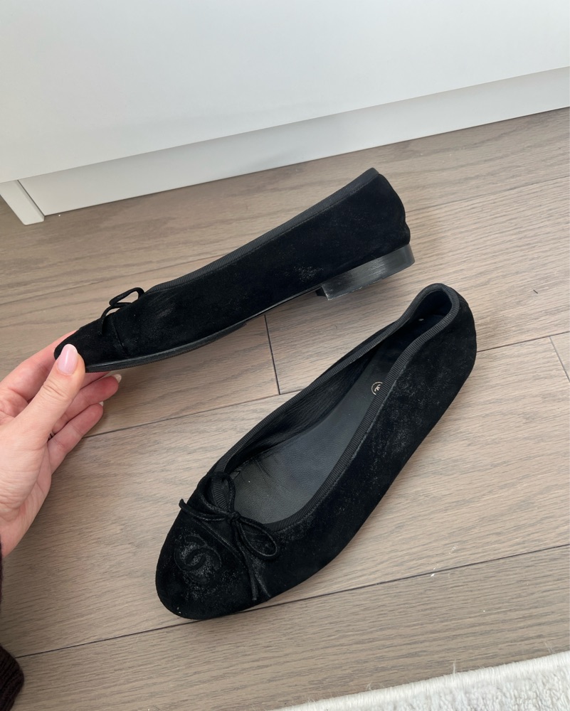 Chanel Black Suede Ballerina Flats