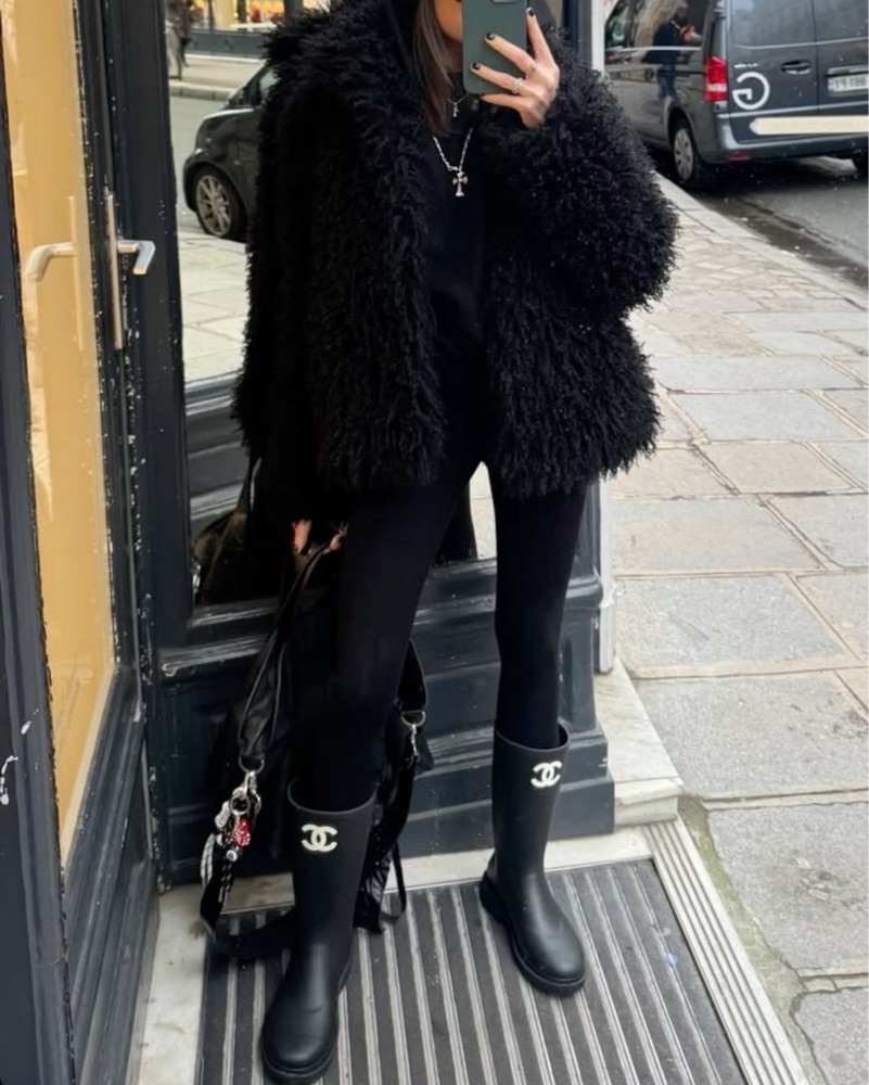 CHANEL Rain Black Boots