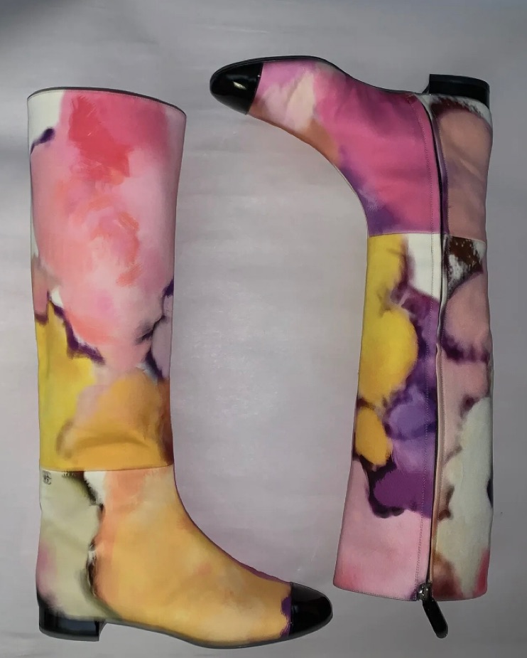CHANEL size 38.5 watercolor floral boots