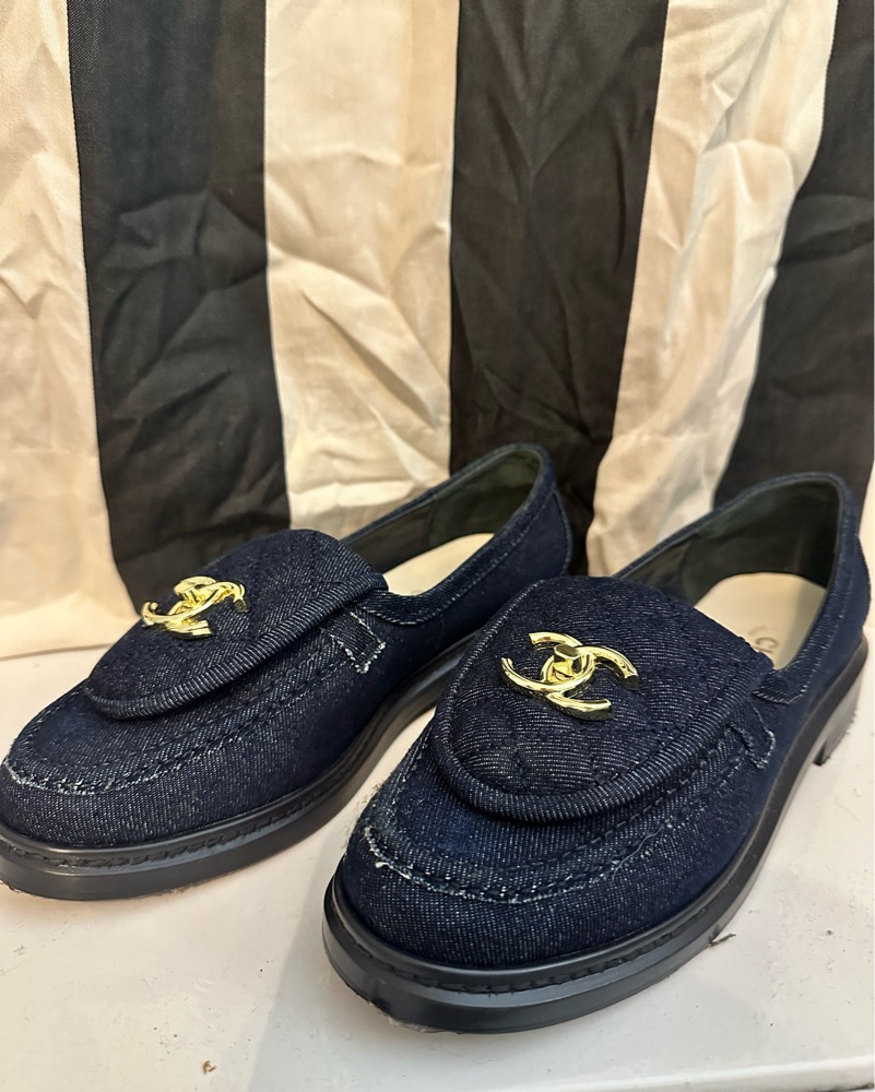 Chanel Denim Loafers with Gold Logo