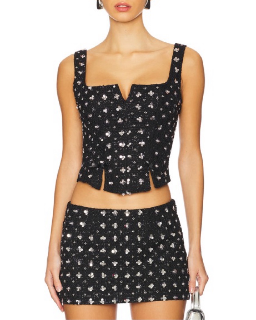 Danielle Guizio Sequin Silver Tie Top