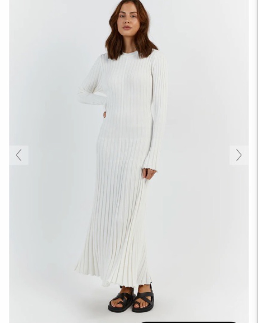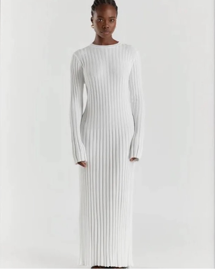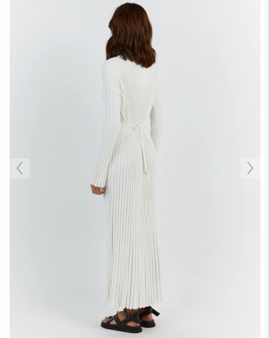Dissh Long Sleeve White Knit Dress
