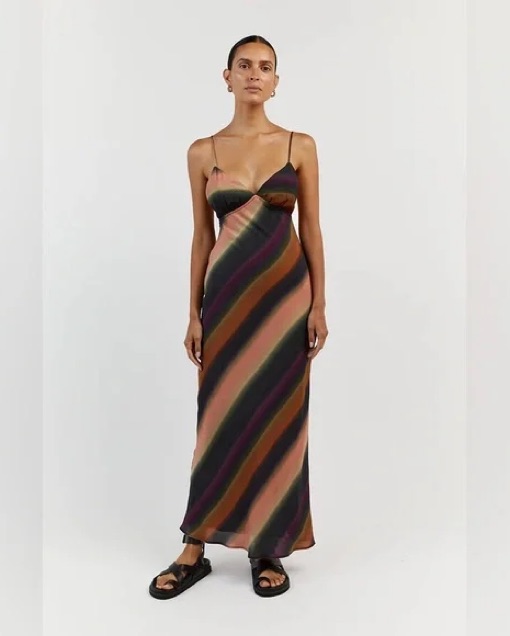 Dissh Chic Striped Satin Maxi Dress