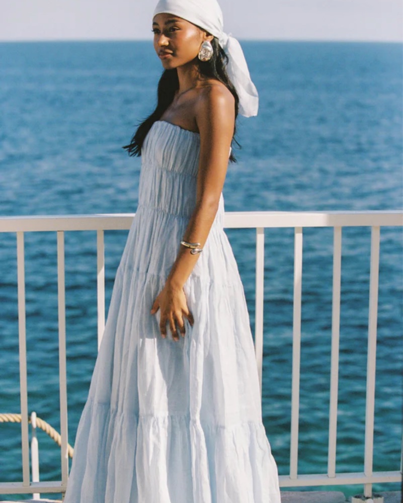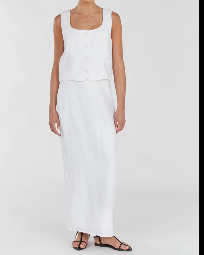 Dissh Karney White Linen Strapless Maxi