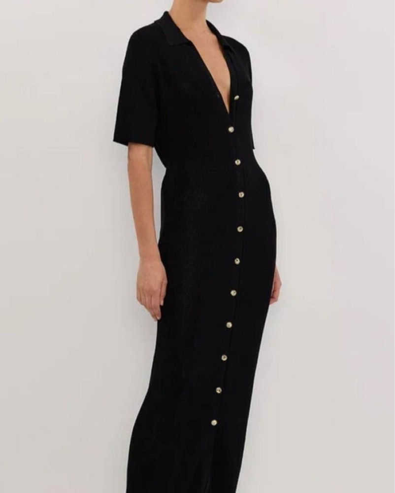 Dissh - LIAM BLACK KNIT POLO MAXI DRESS