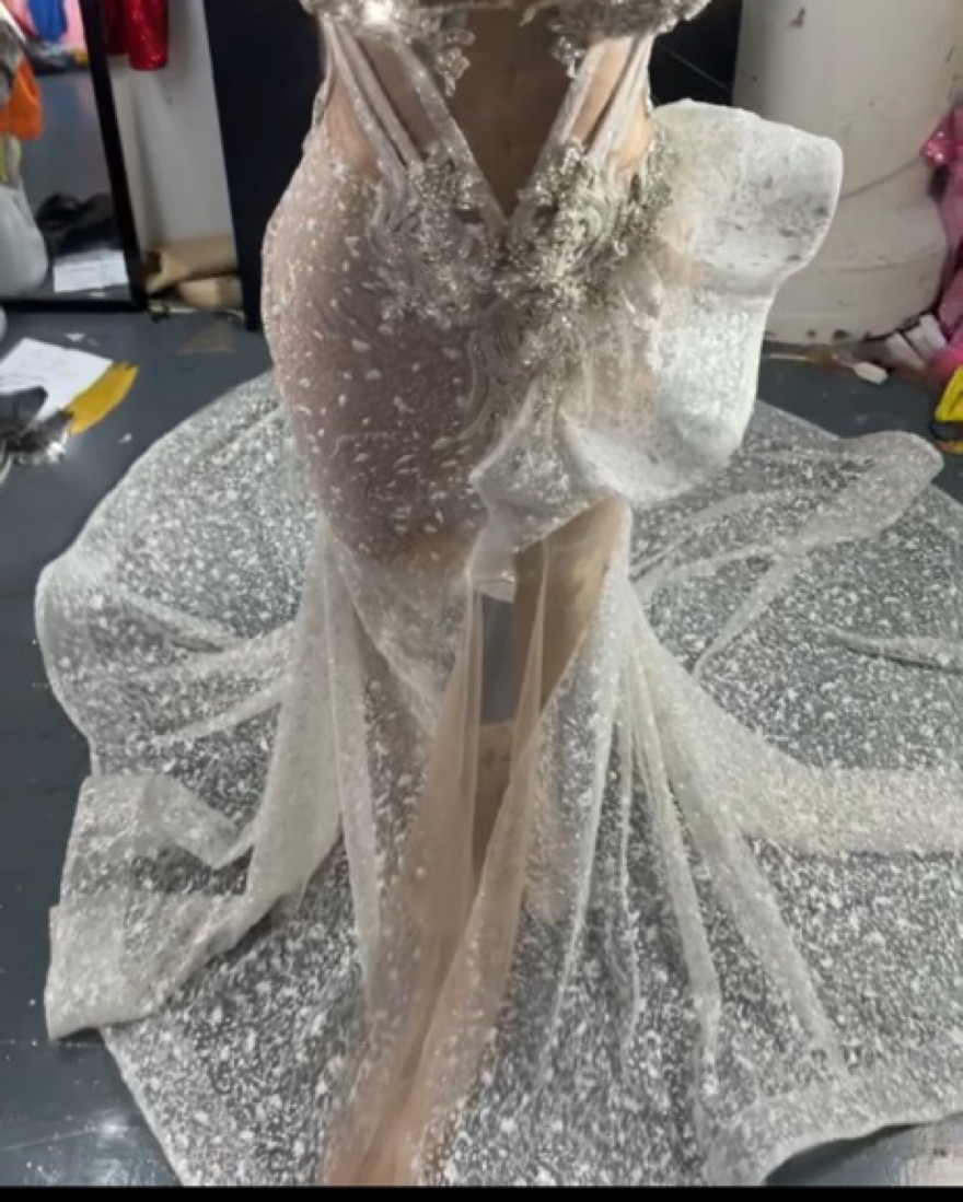 Floor Length Crystal Silver Dress