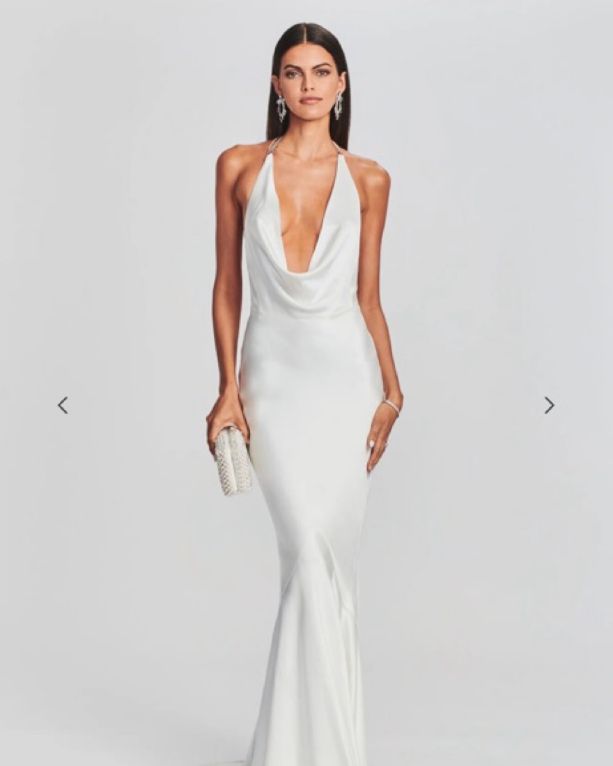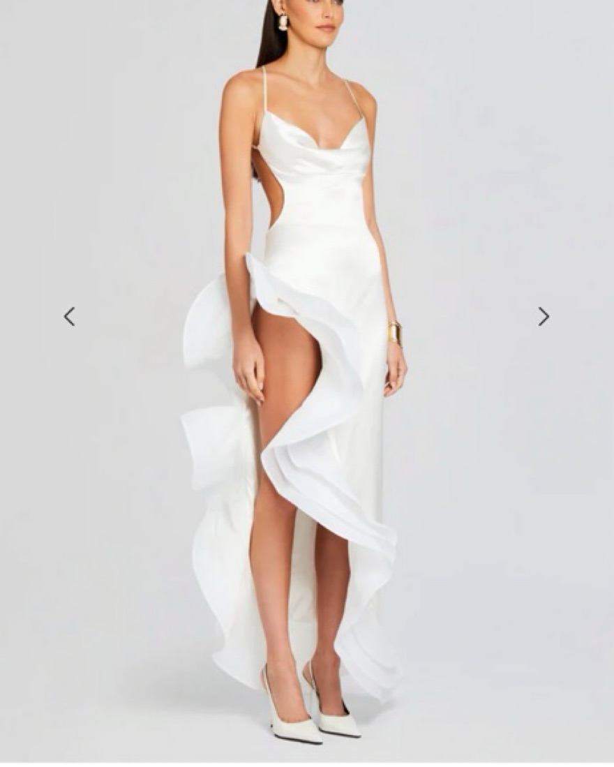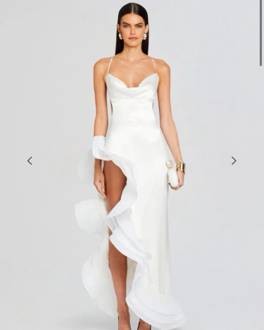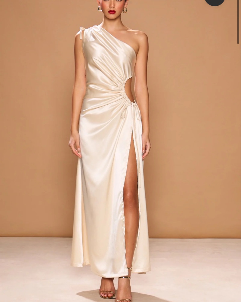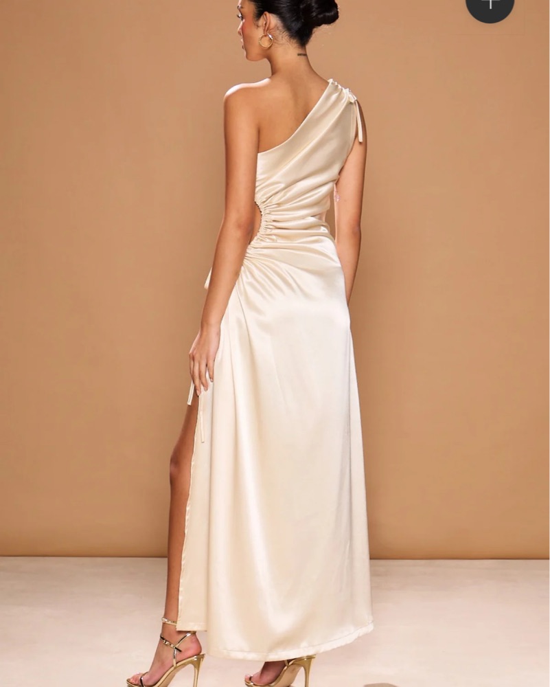 NOUR OCEAN PEARL Asymmetric Satin Gown