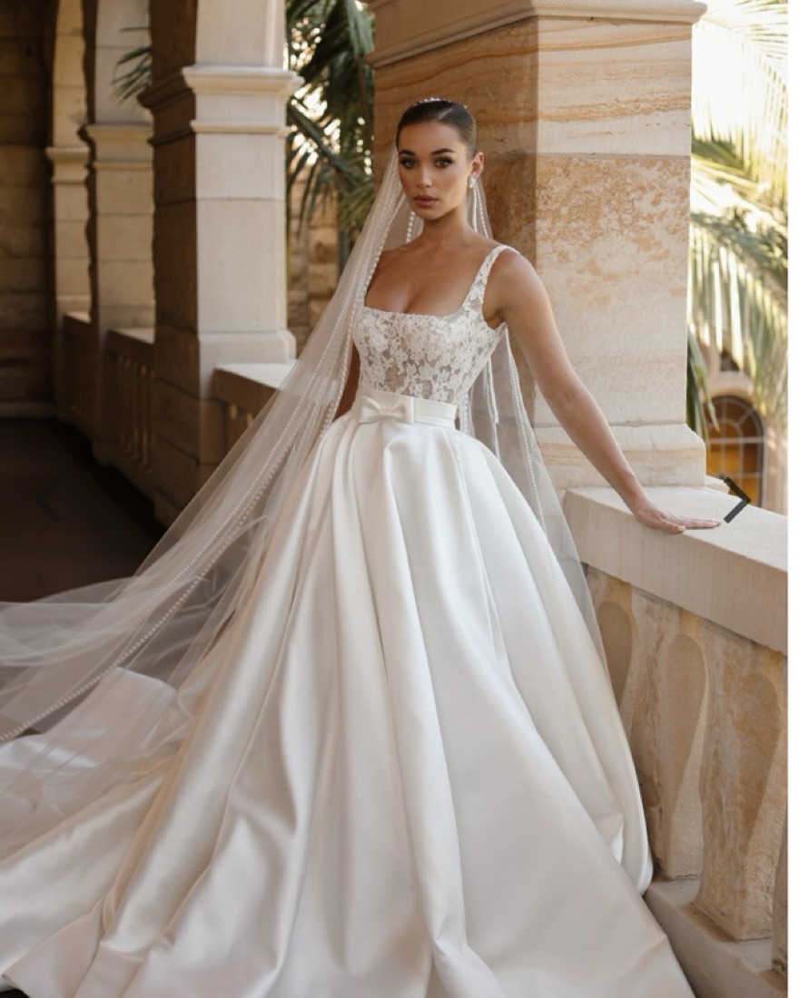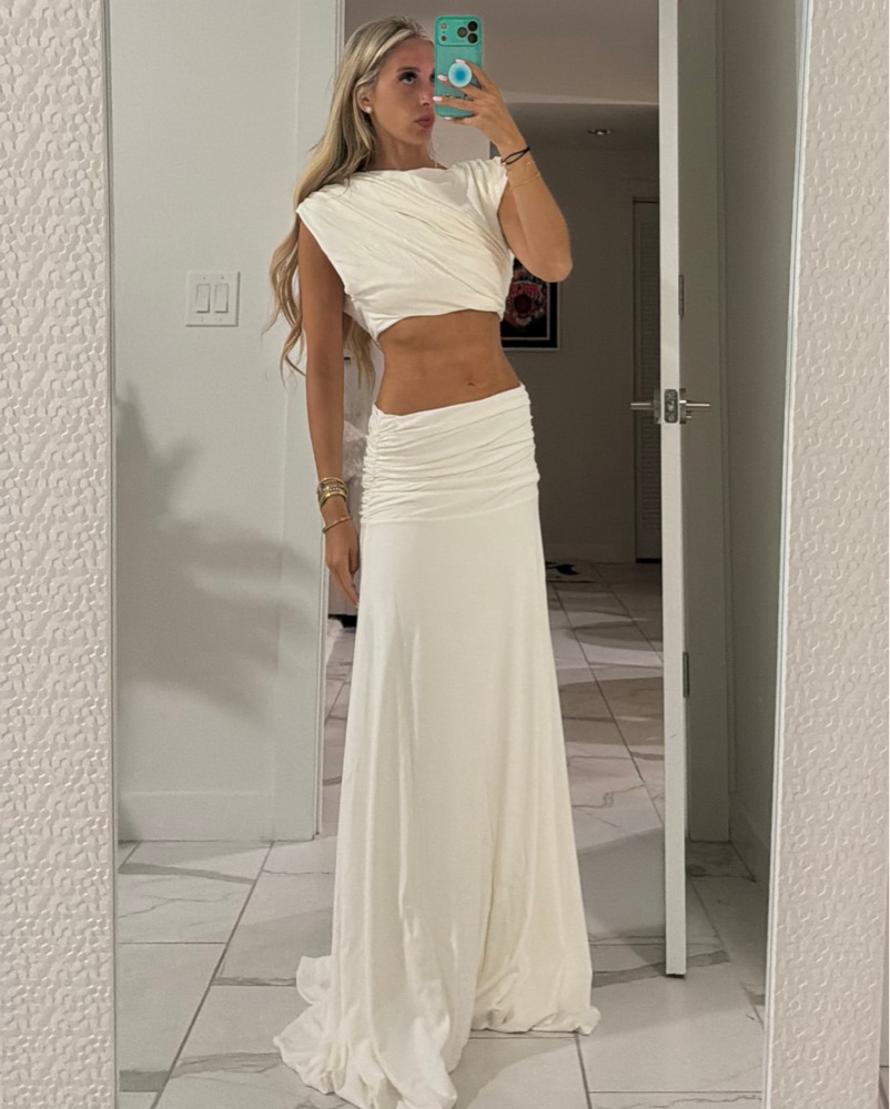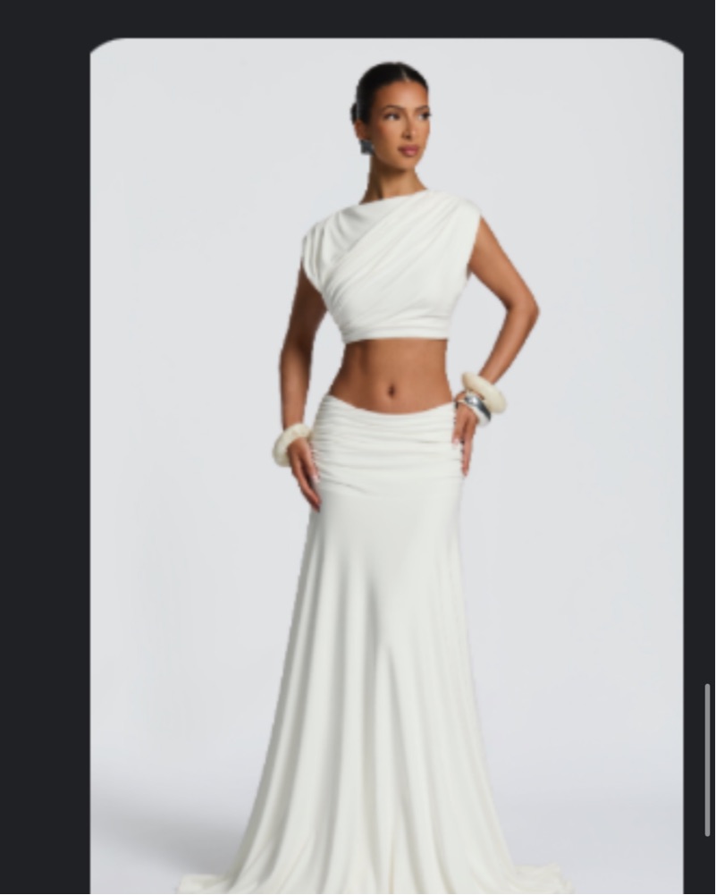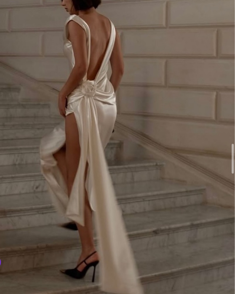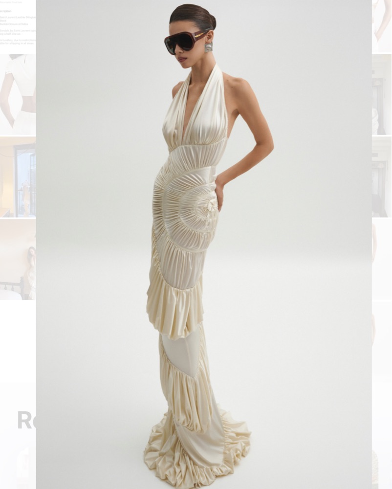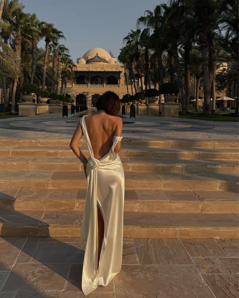 NOUR OCEAN PEARL Asymmetric Satin Gown