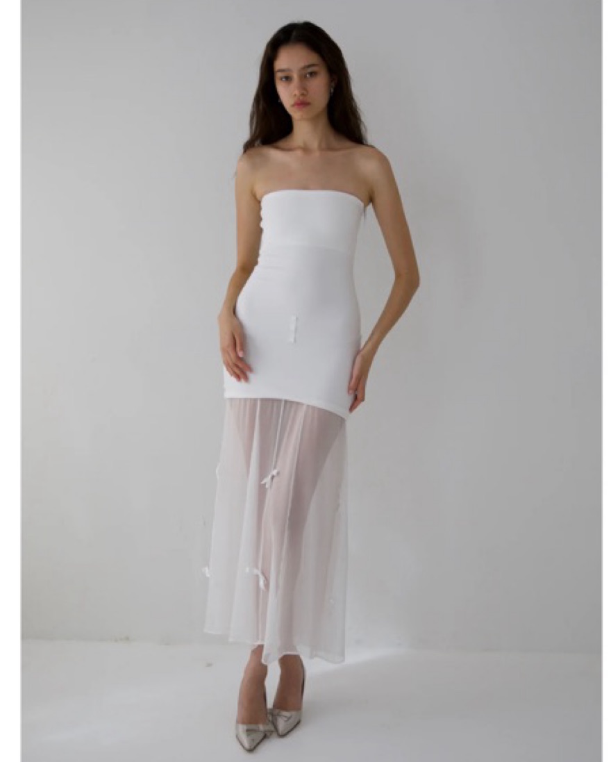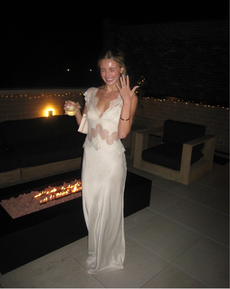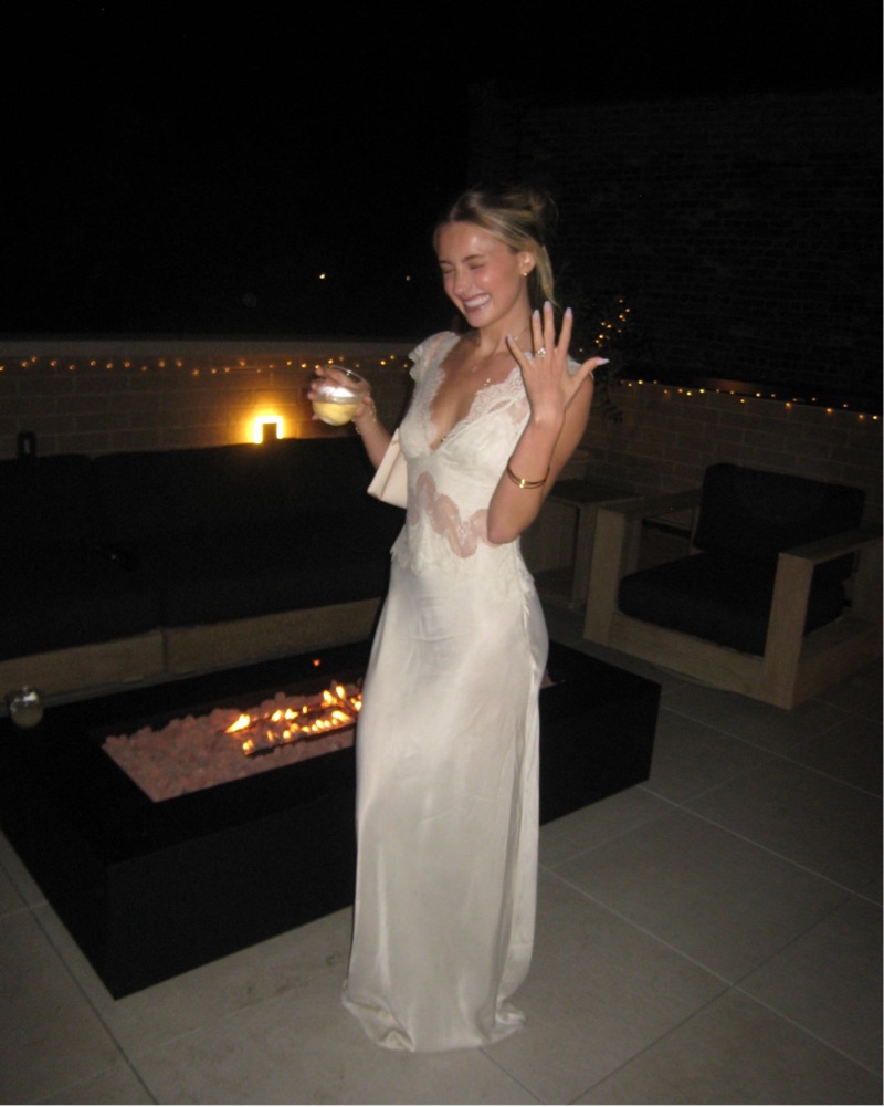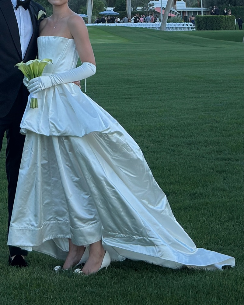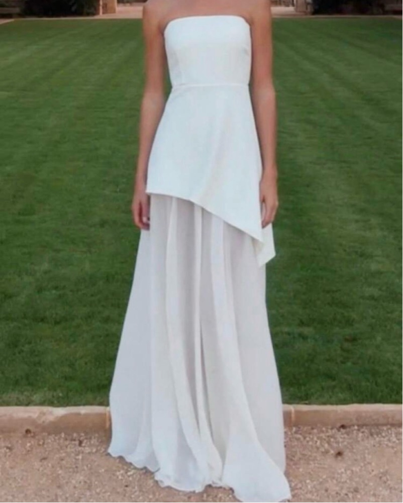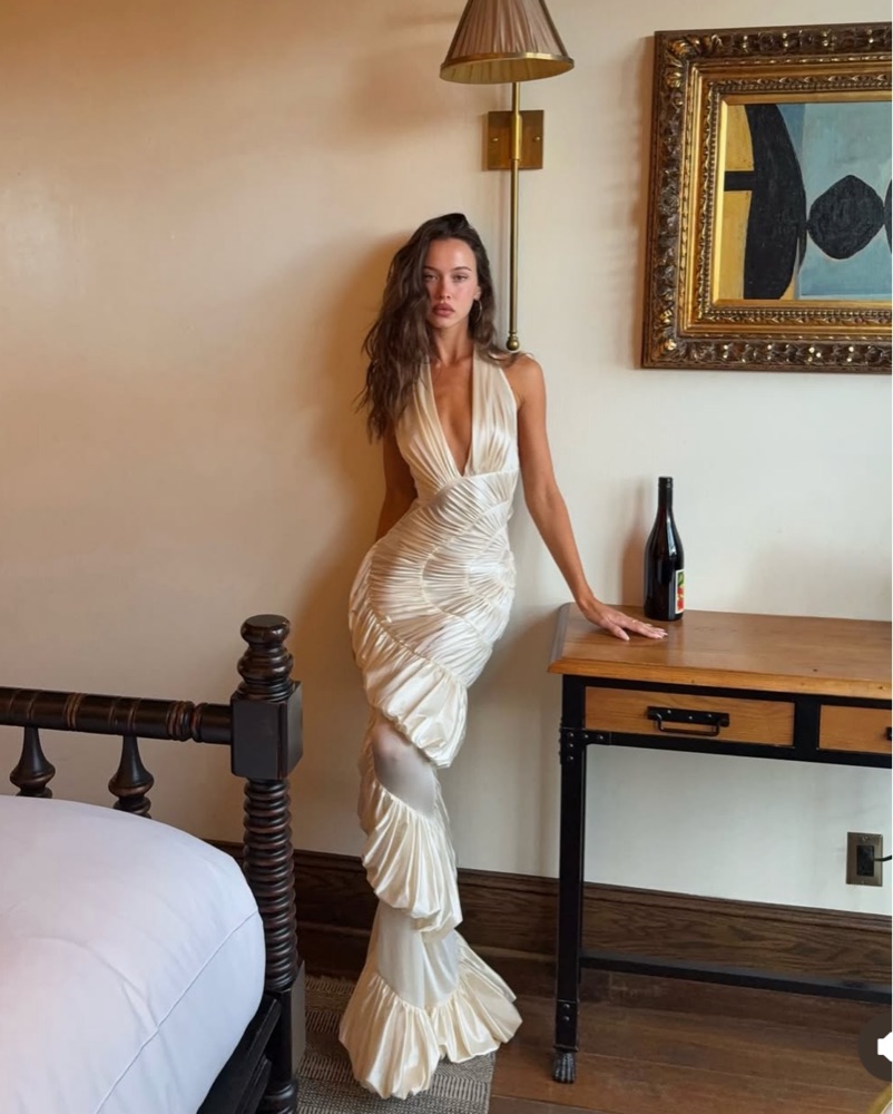 NOUR OCEAN PEARL Asymmetric Satin Gown