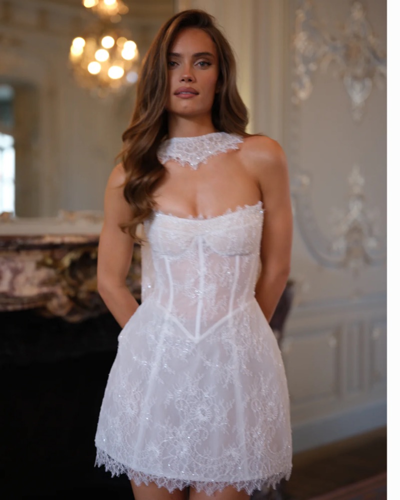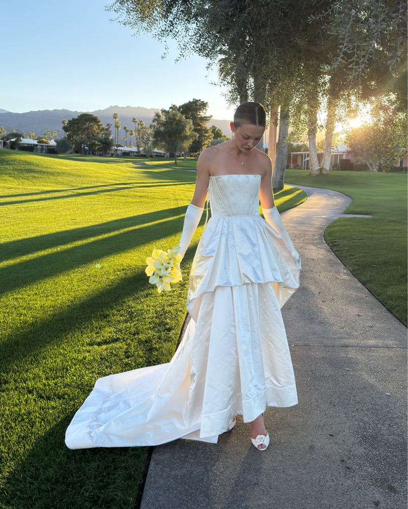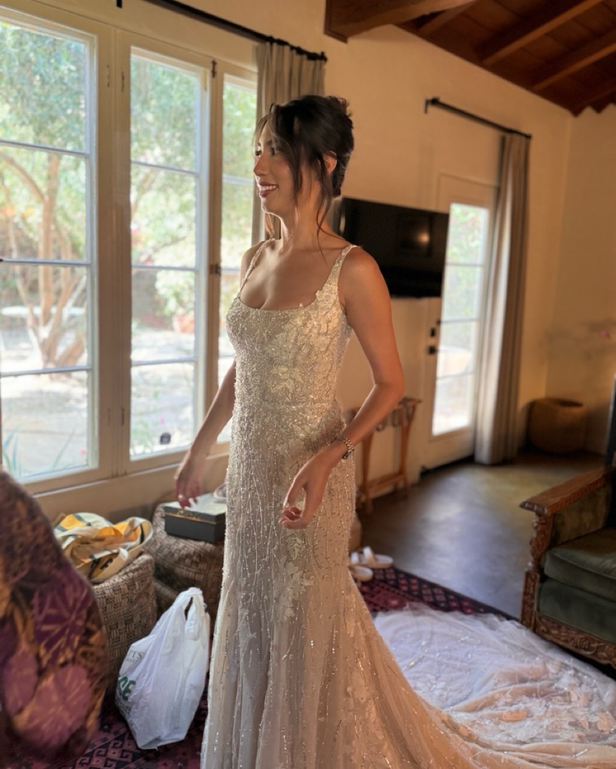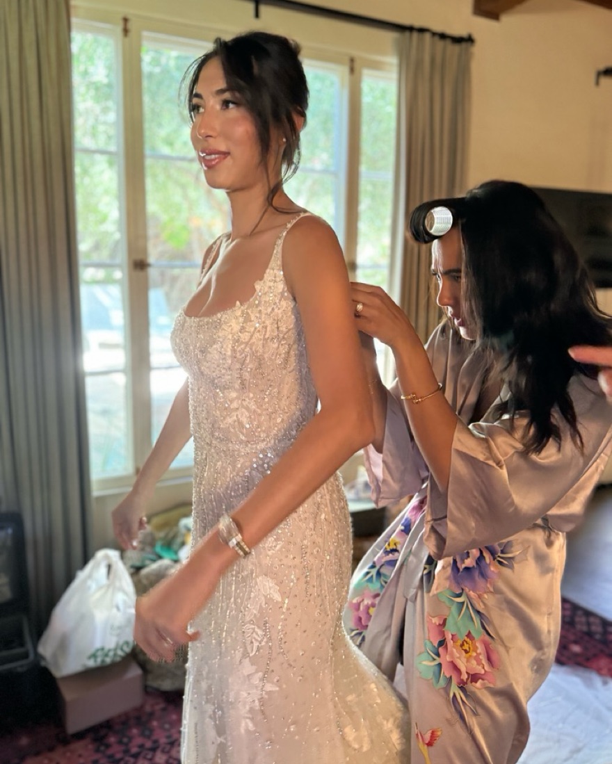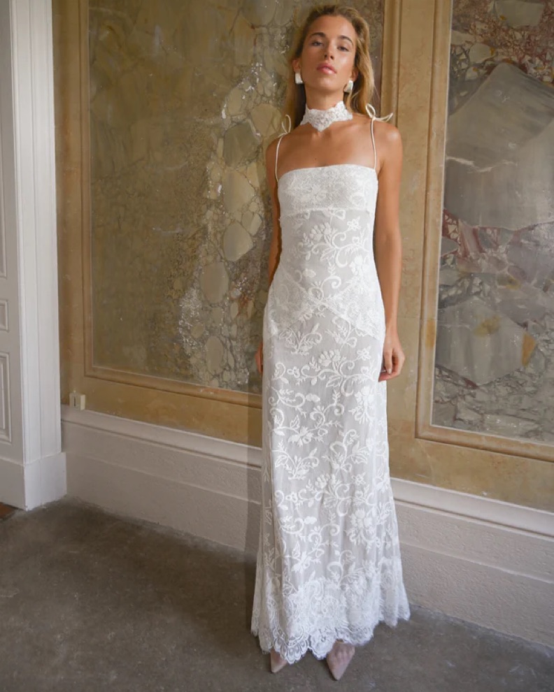 NOUR OCEAN PEARL Asymmetric Satin Gown