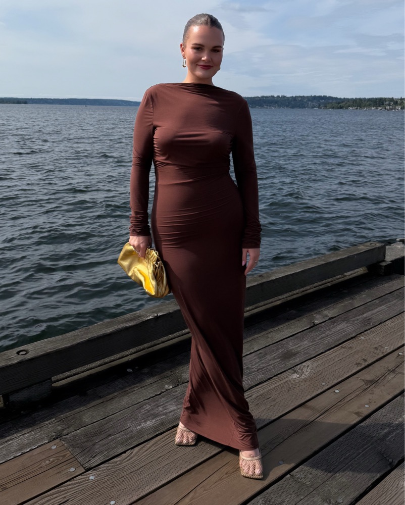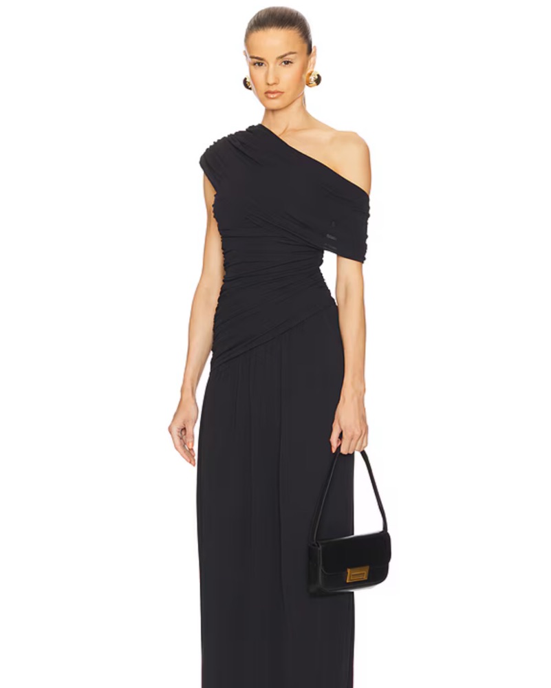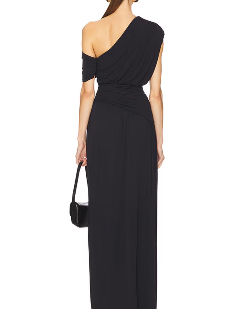 Helsa L/S Gold Ruched Maxi Dress