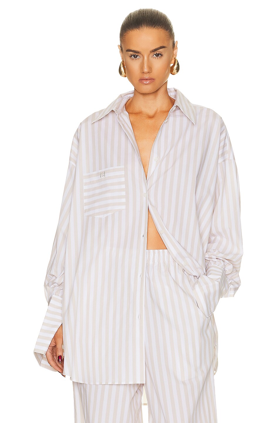 Cotton Poplin Stripe Oversized Shirt In Beige Stripe
