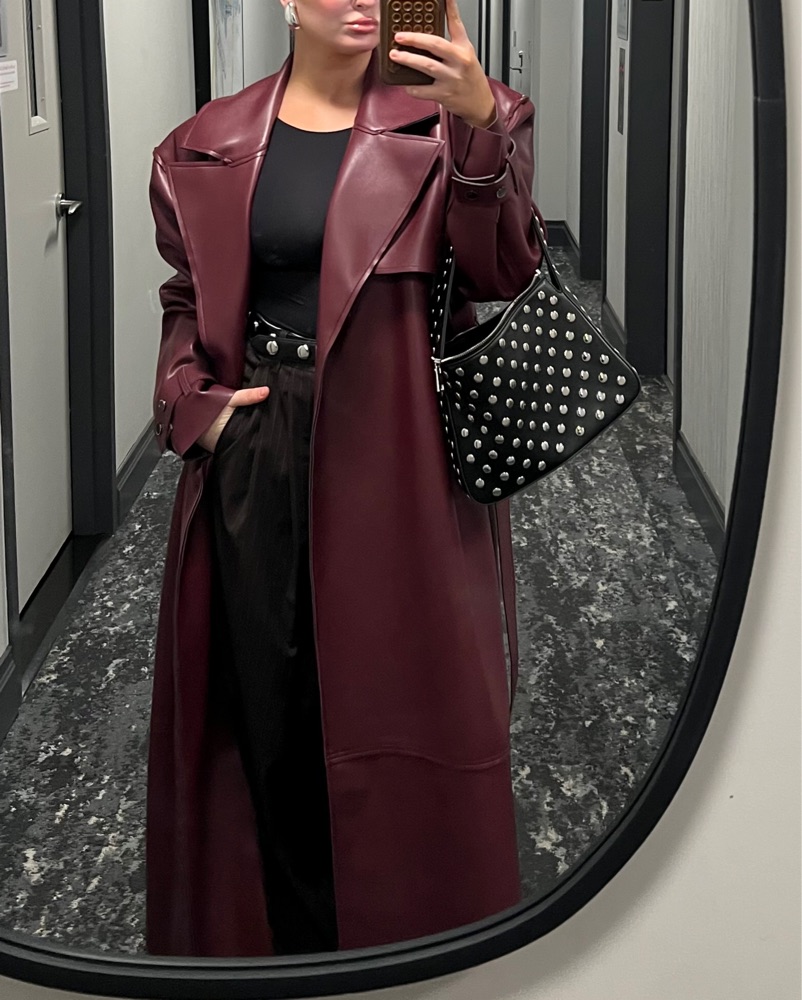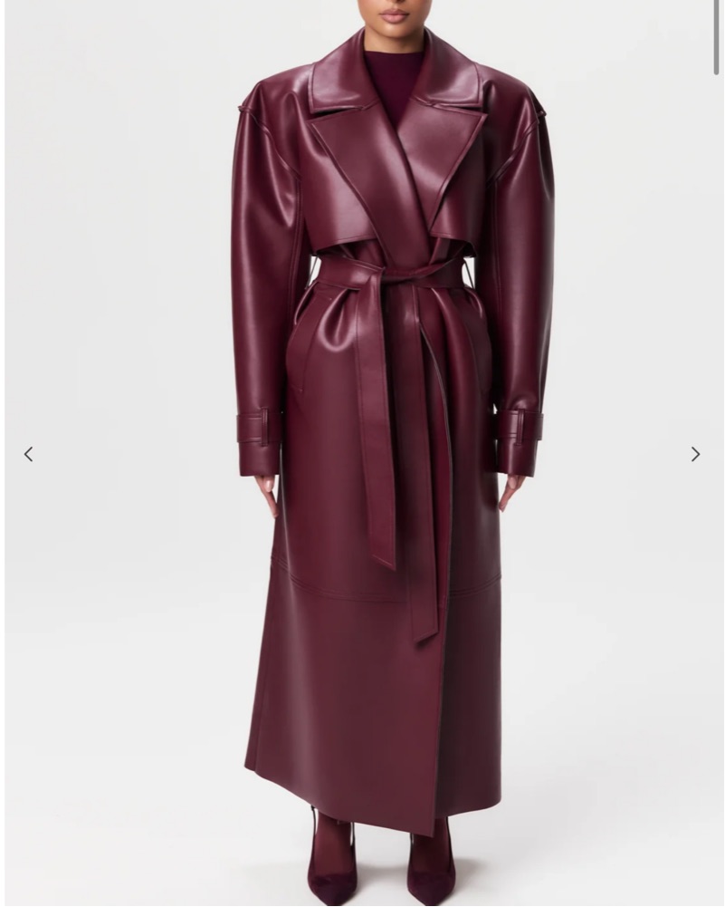 Burgundy Faux Leather Trench Coat