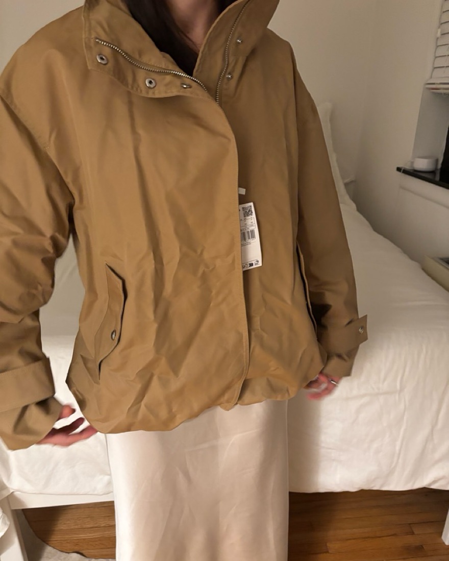 Stylish Tan Parka with Zipper Detail
