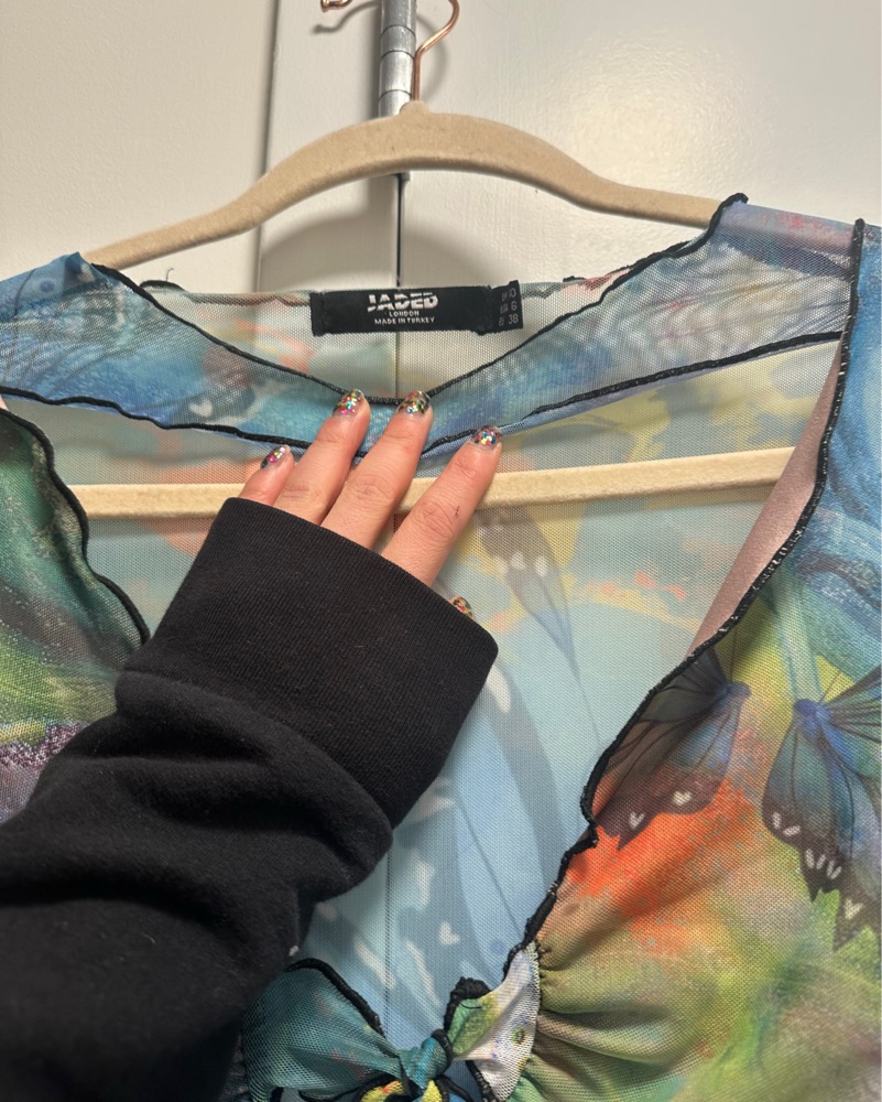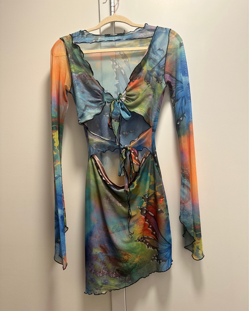 Jaded London Butterfly Print Mesh Dress
