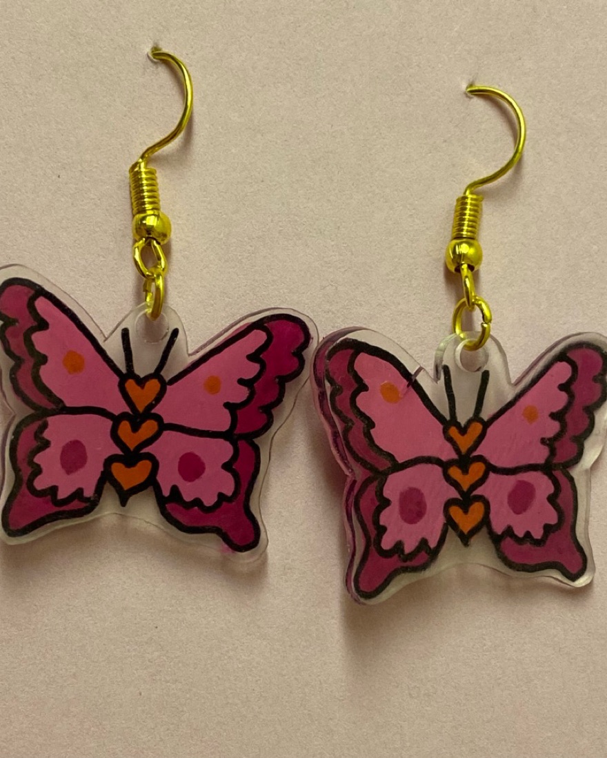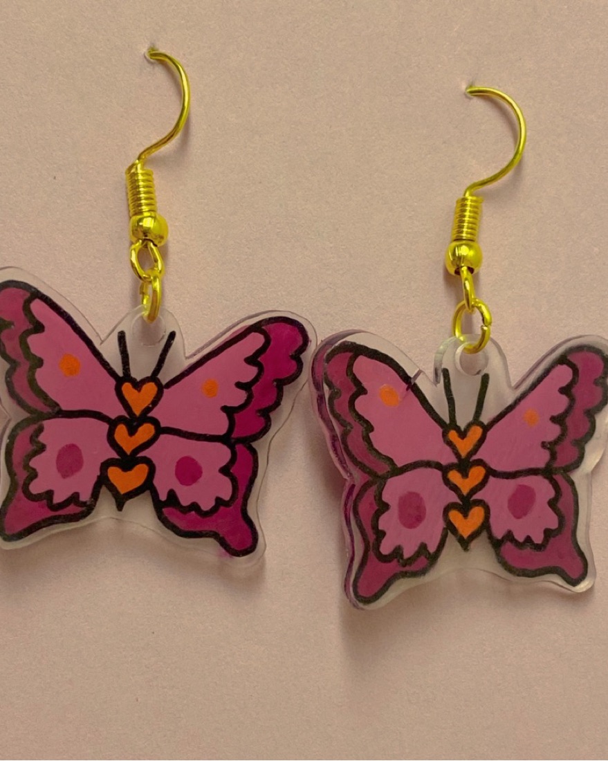 Handmade Pink Butterfly Earrings