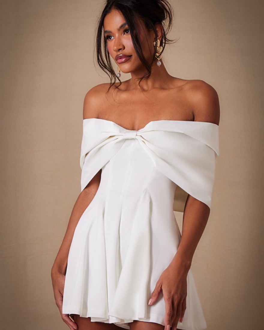 Prettylittlething White Bow Romper