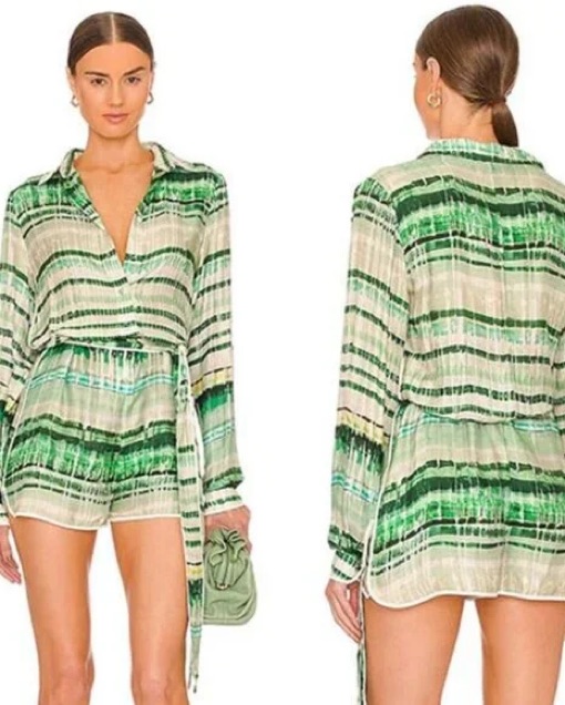 Alexis Green Striped Romper