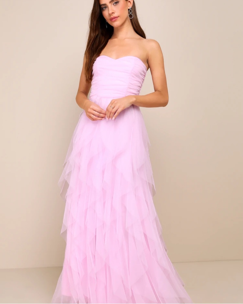 Lulu’s Pink Tulle Strapless Maxi Dress
